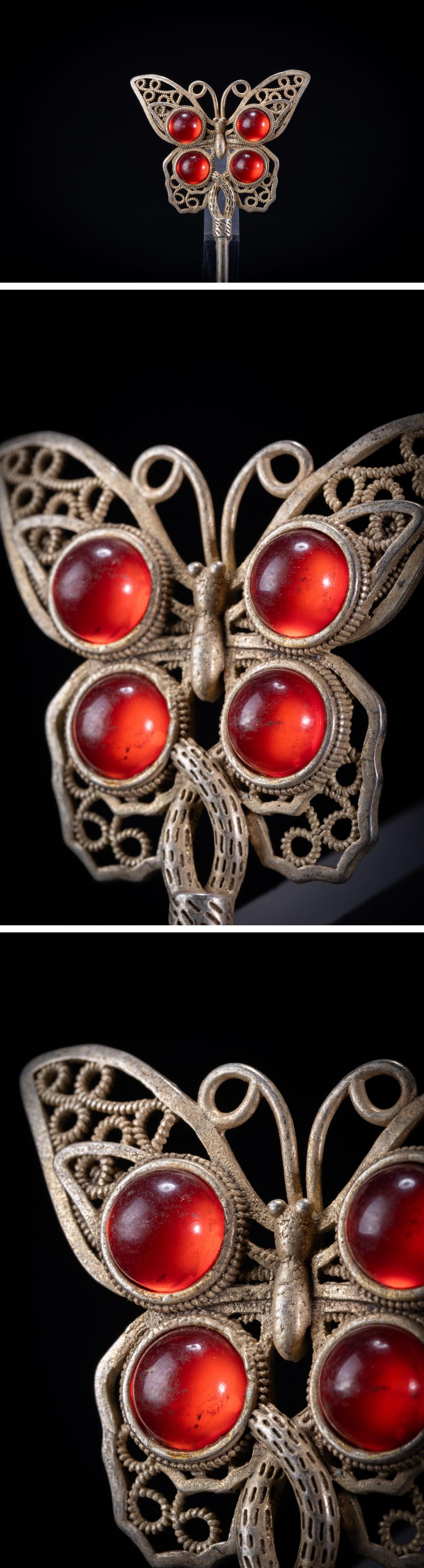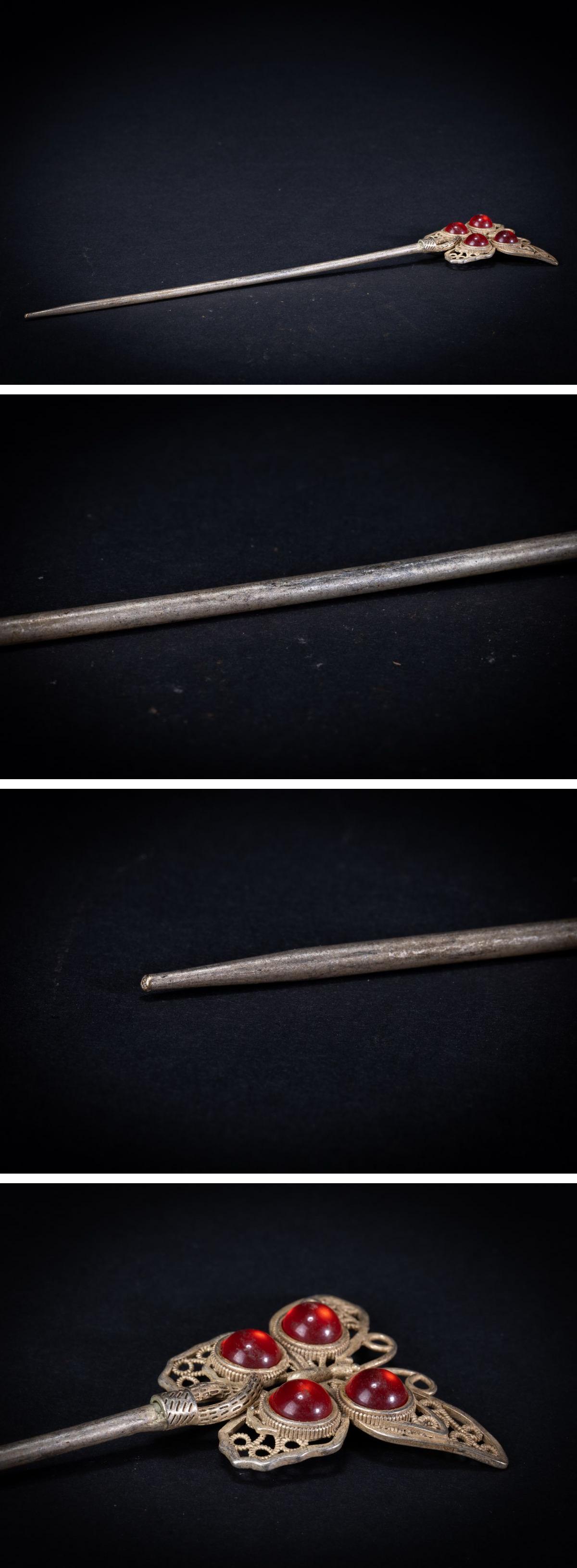 【珍品堂】1円から アクセサリ 銀 銀製 シルバー 宝石付 時代物 古美術 骨董品 H17.6cm N-A16-NO 收藏