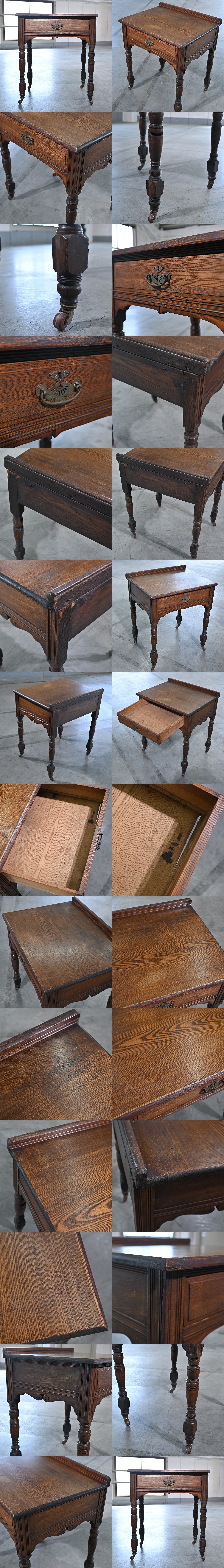 イギリスビンテージ コンソールテーブル オーク無垢材 英国 収納 飾り台 クラシック 引き出し ヨーロッパ リビング 玄関 キャスター サイド 收藏