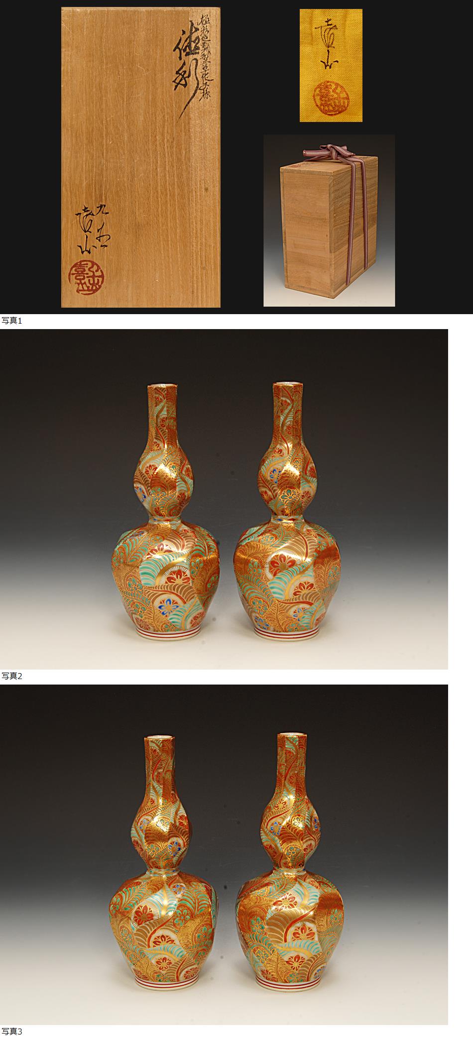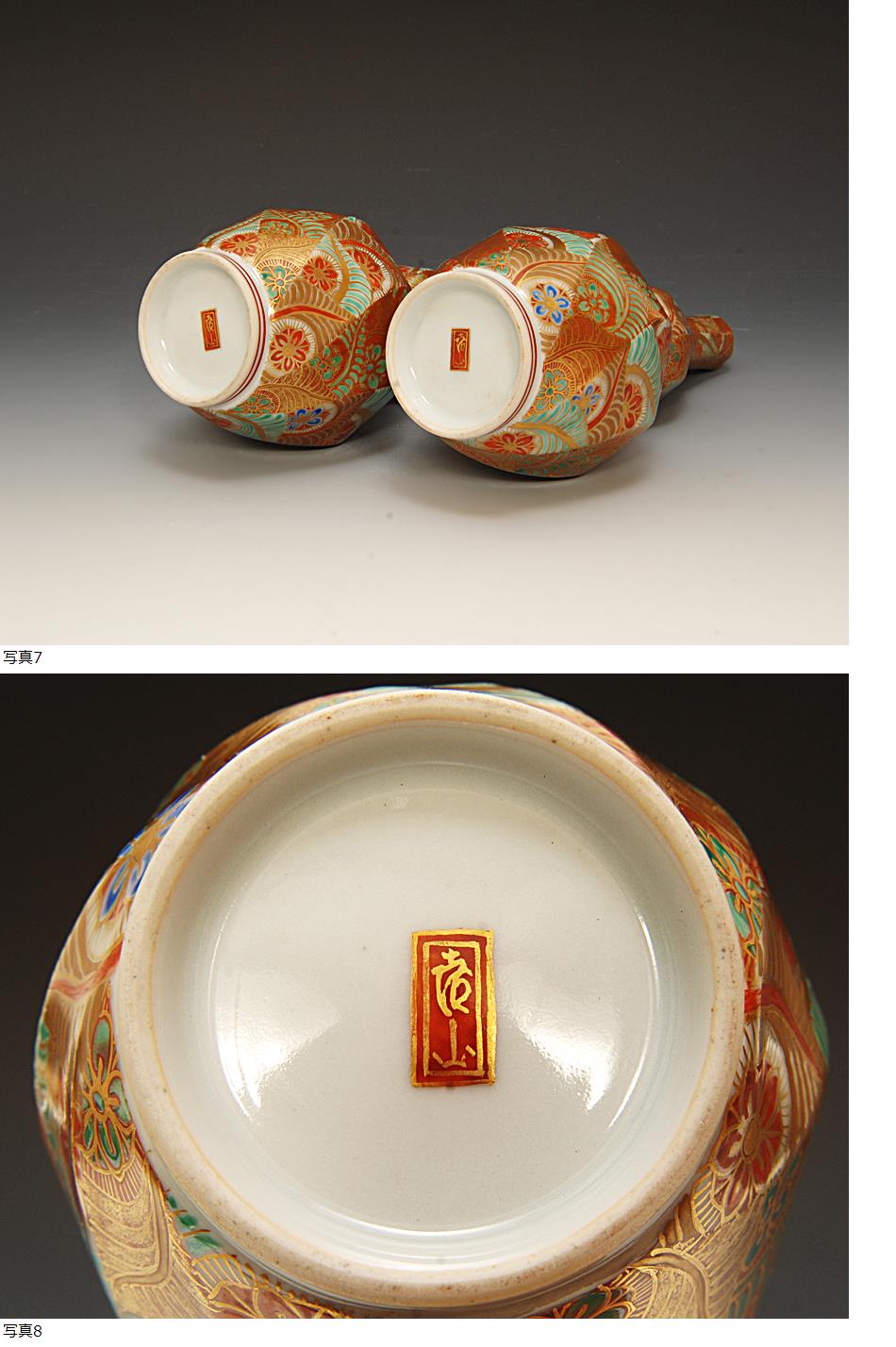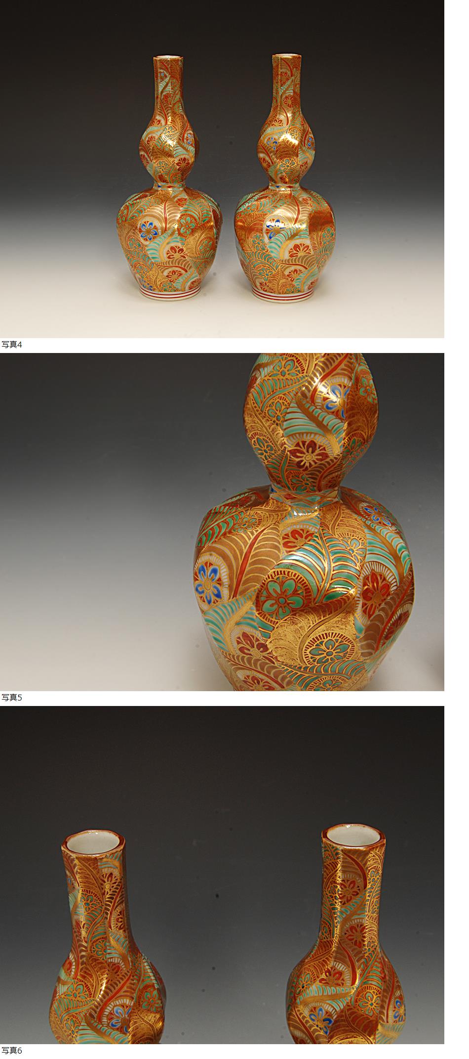 星庵厳選名品企画個展作 上出喜山 極彩色瓢型草紋様徳利一対 共箱
