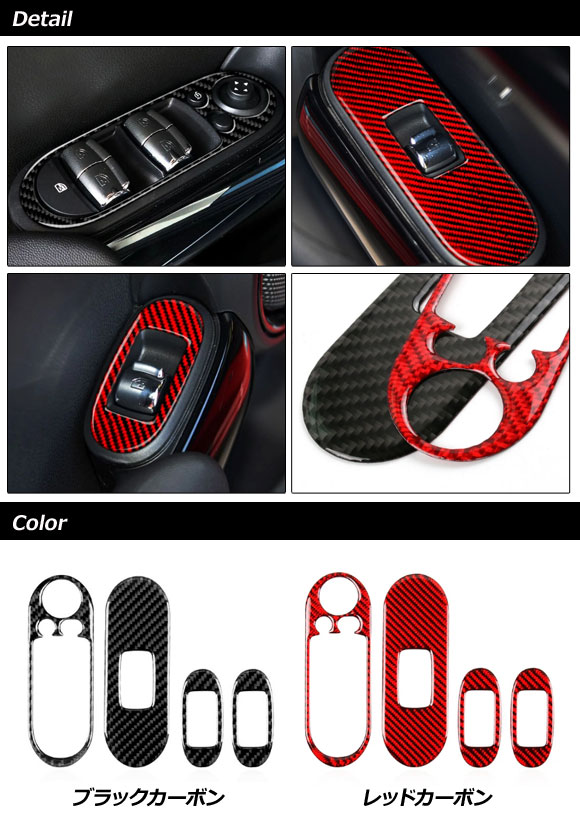パワーウインドウスイッチカバー MINI(BMW) F55 2014年~ ブラックカーボン カーボンファイバー製 入数:1セット(4個) AP-IT3105-BKC 收藏
