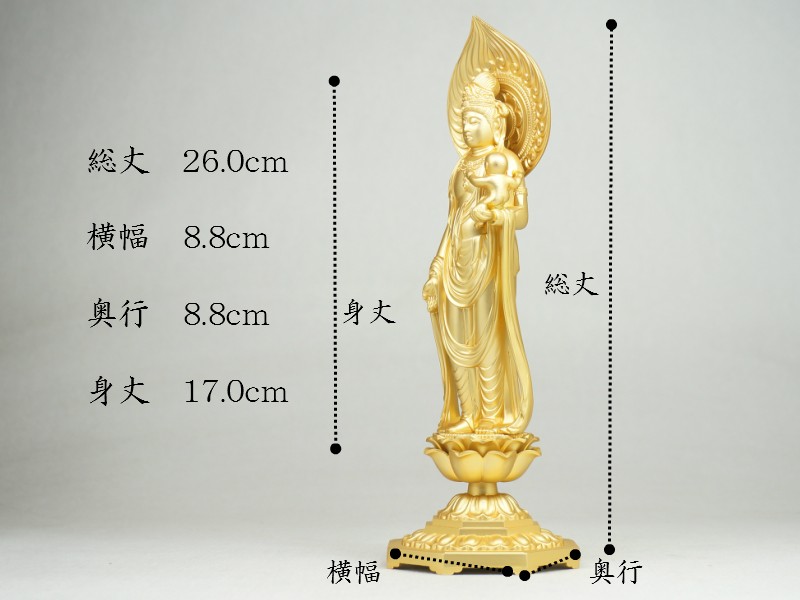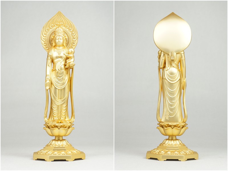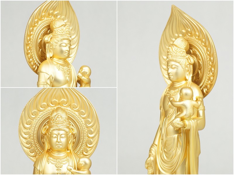 慈母観音菩薩 26.0cm 金鍍金仕上 合金製[仏像] 收藏