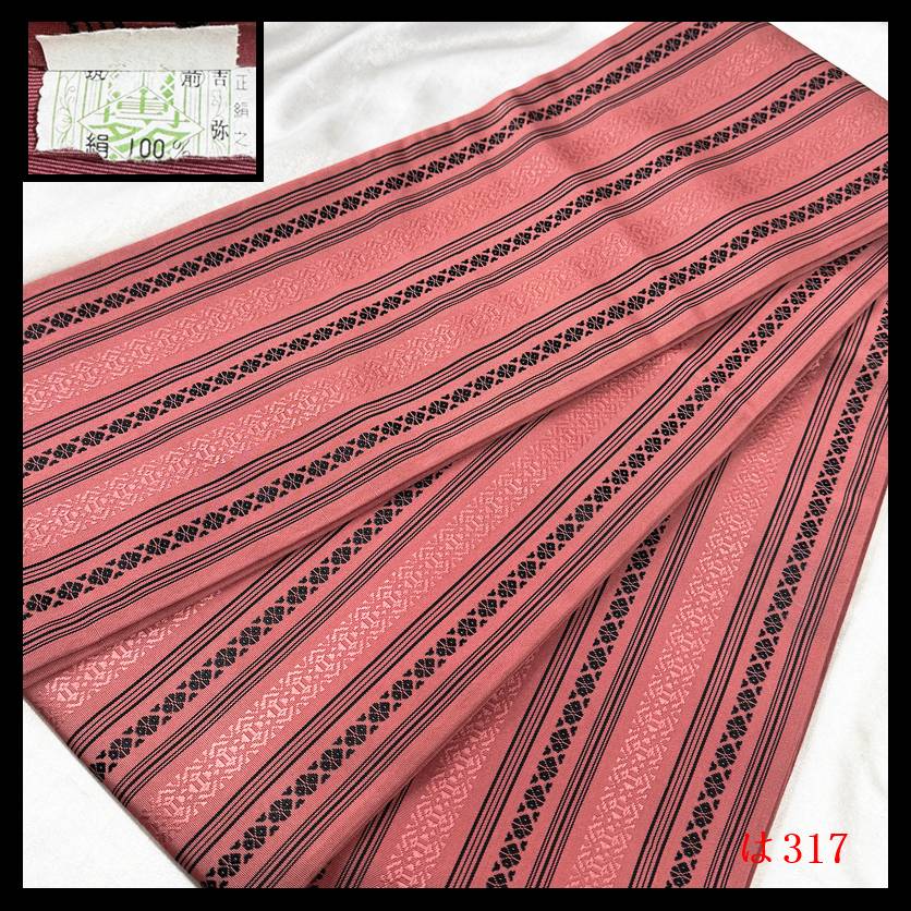 【は317】厳選逸品 半幅帯 本場筑前博多織 小袋帯浴衣帯 献上柄 紅樺色地 正絹 ◇検着物簪袋帯名古屋帯和装小物帯締め 收藏