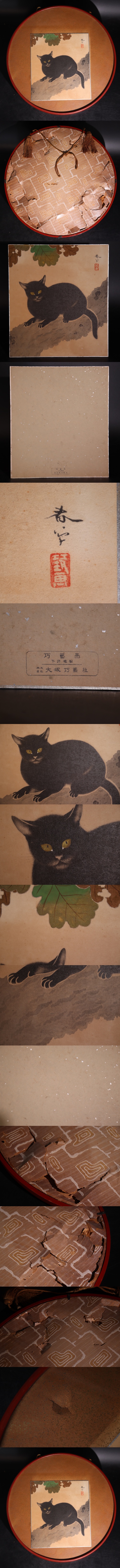 【 模写 】 菱田春草 重要文化財 「 黒き猫 」 額縁 / 猫 ネコ 黒猫 巧藝画 複製画 大塚巧藝社 煎茶飾 .G3411 收藏