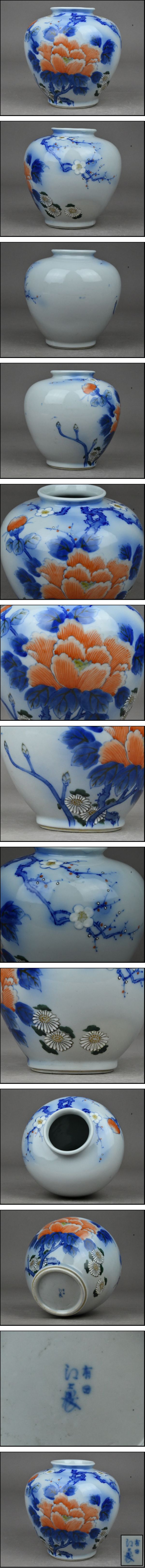 【NNK】古伊万里 有田焼【江上製】染錦 金彩色絵 牡丹図花瓶 花入 飾壷 古美術品 D7-1209-59 收藏