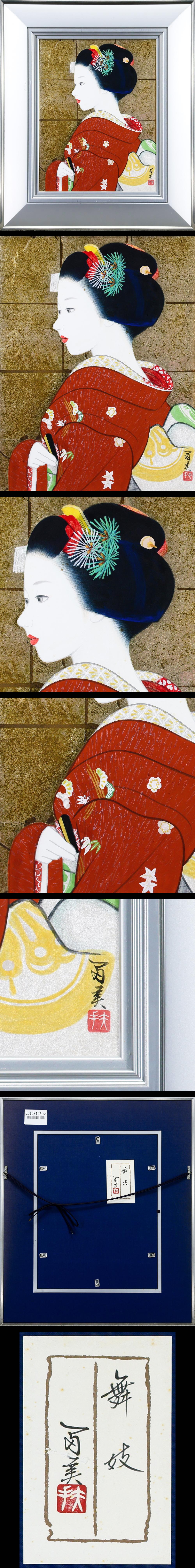 【真作】【WISH】倉田冨美「舞妓」日本画 約6号 金箔・金泥仕様 プラチナ泥 共シール ◆気品ただよう美人名画 〇日輝展会員 #25123195 收藏