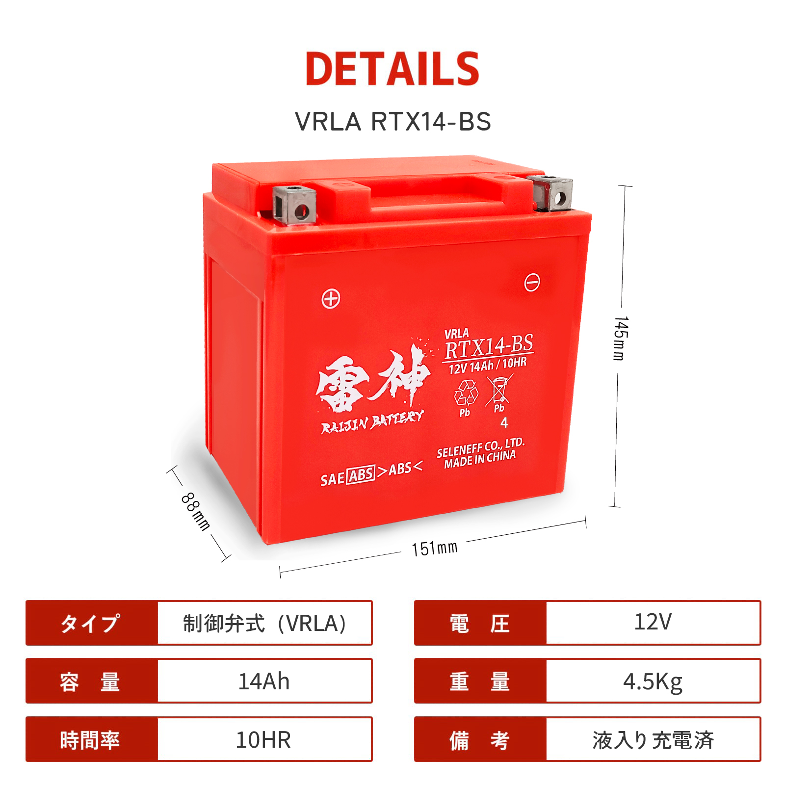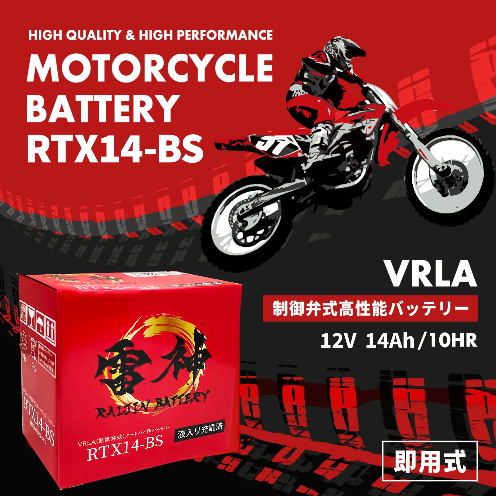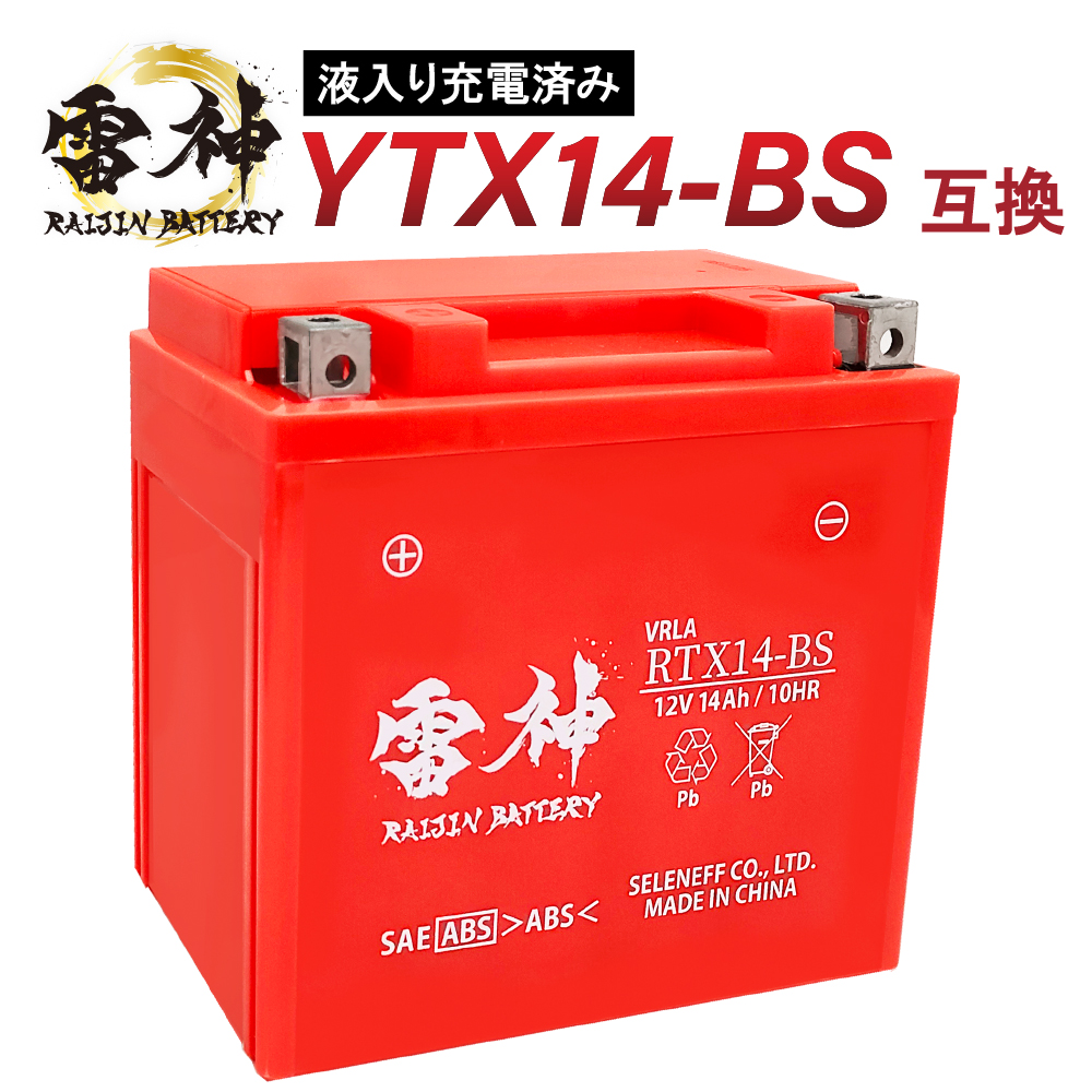 バイク バッテリー YTX14-BS 互換 RTX14-BS 雷神バッテリー 液入り充電済 高性能 VRLA 制御弁式 オートバイ 密閉型 FTX14-BS GTX14-BS 收藏