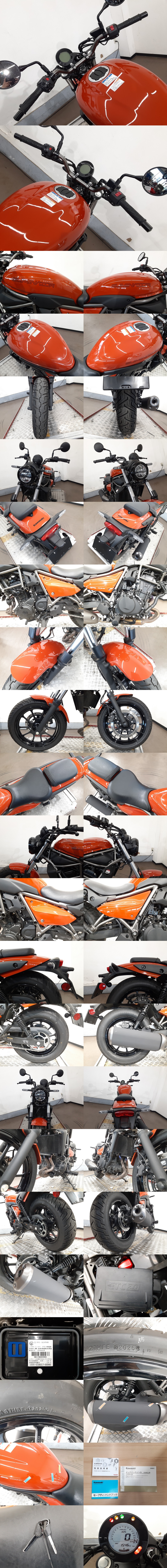 ■メーカー : カワサキ ■車 名 : エリミネーター400 ■排気量 : 400cc ■走行距離 : 1546km ■車体番号 : EL400A-***944 ■車検(自賠責保険) : 令和09年07月 ■年式(または初年度登録) : 令和7年 ■車両状態 エンジン 始動確認済み 始動、暖気後 アイドリング、吹け上がりとも良好です。 車体 試乗確認済み、ブレたりハンドルが取られるようなことはありませんでした。 保安部品 ライト、ウインカー・テールランプ等保安部品は正常作動いたします。 外装 使用感や小傷などはございますが、外装に艶があり年式からするとキレイな車輛です。 ※画像でわかりにくい点や気になる点ありましたら、現車確認またはご質問ください。 ■その他 ご不明な点などありましたら、車両の前でご説明も可能です。お気軽にお問い合わせください。 試乗確認をおこなって走行可能なことを確認してからの出品になります。 出品車両以外にも在庫車ございますので、是非現車確認にお越しください。 ![]() | ||