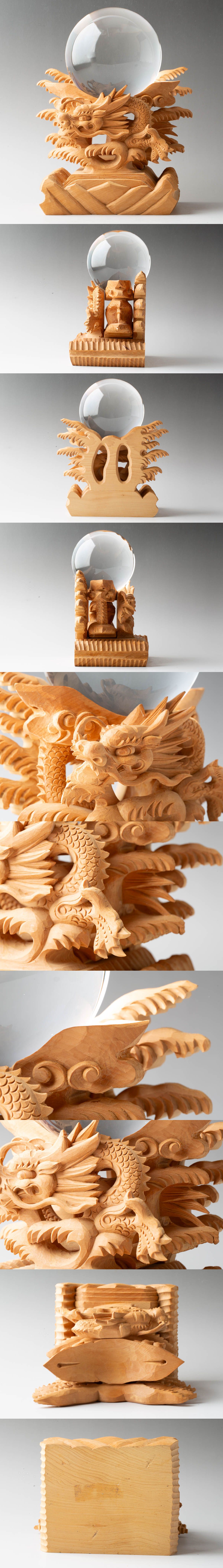 龍彫玉置き台 木製 細密彫刻 神具 水晶台座 宗教 仏具 仏教美術 置物 #39250 收藏