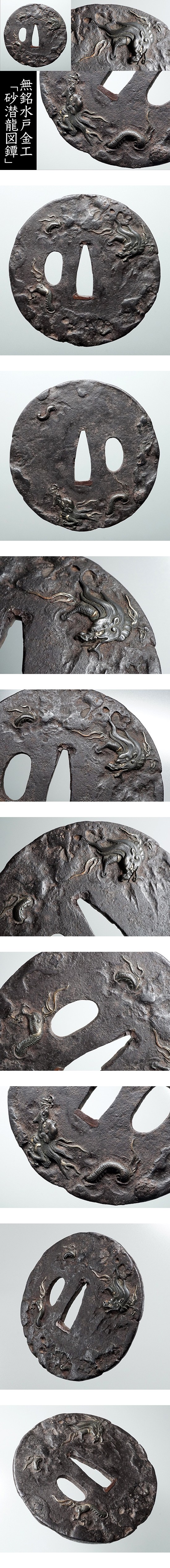 無銘水戸金工「砂潜龍図」鉄地に四分一象嵌 細密彫 参考検索:常陸 額川 江戸期日本刀剣刀装小道具外装拵 收藏