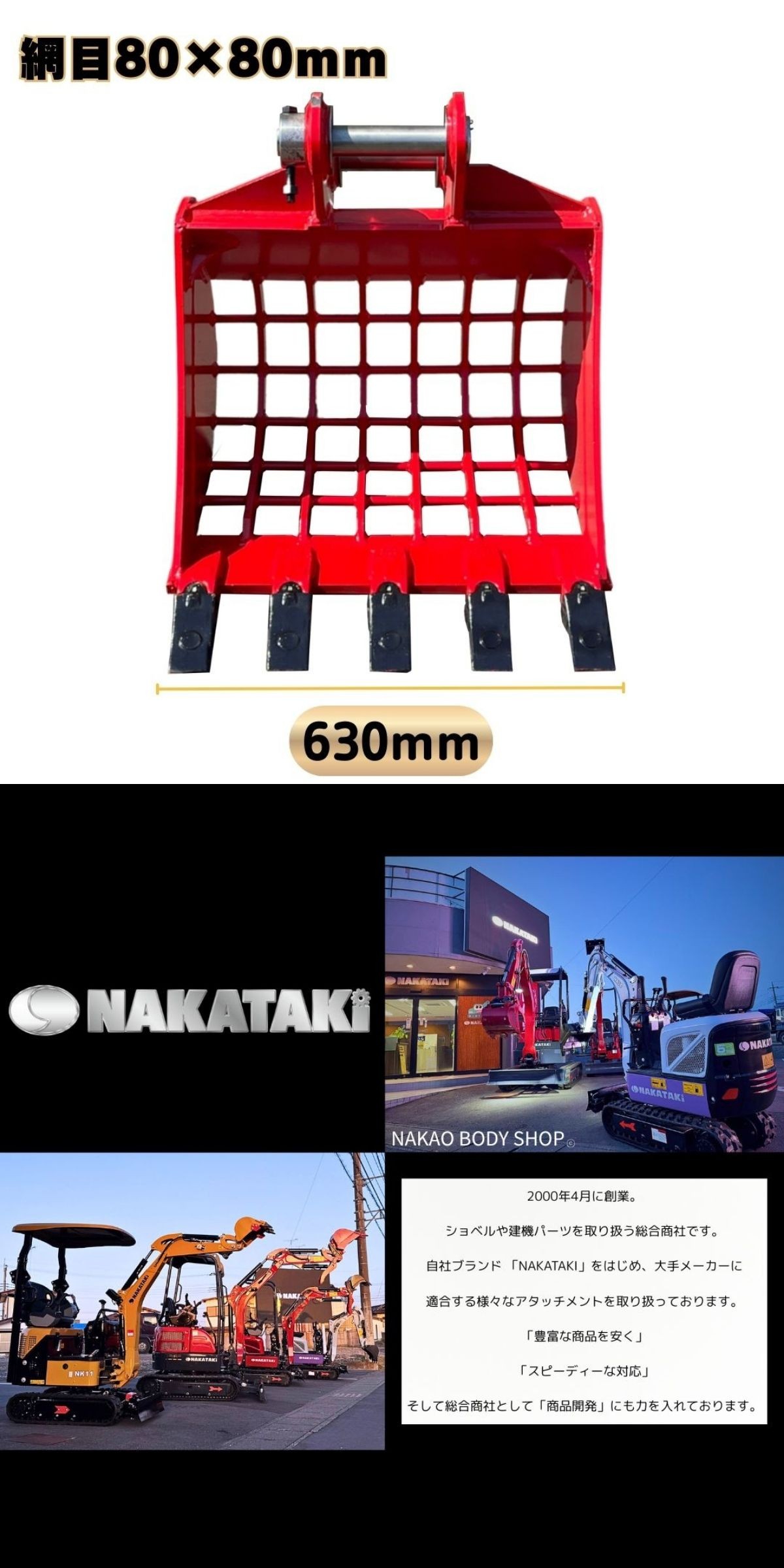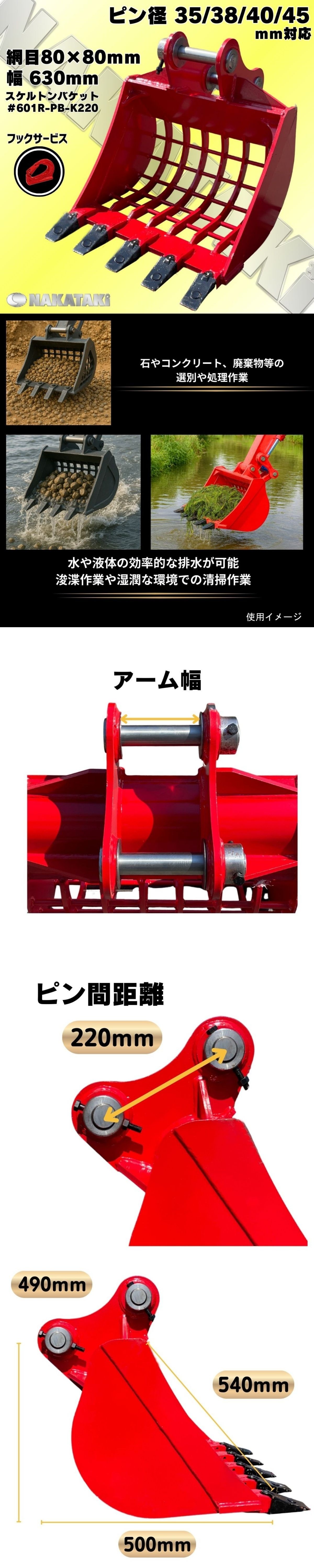 入荷しました! スケルトン バケット NAKATAKI#601R-PB-K220 コベルコ SK27SR SK30SR-1 SK30SR-3 SK30UR-3 幅630mm 網目80×80 ¥#601R-220 收藏