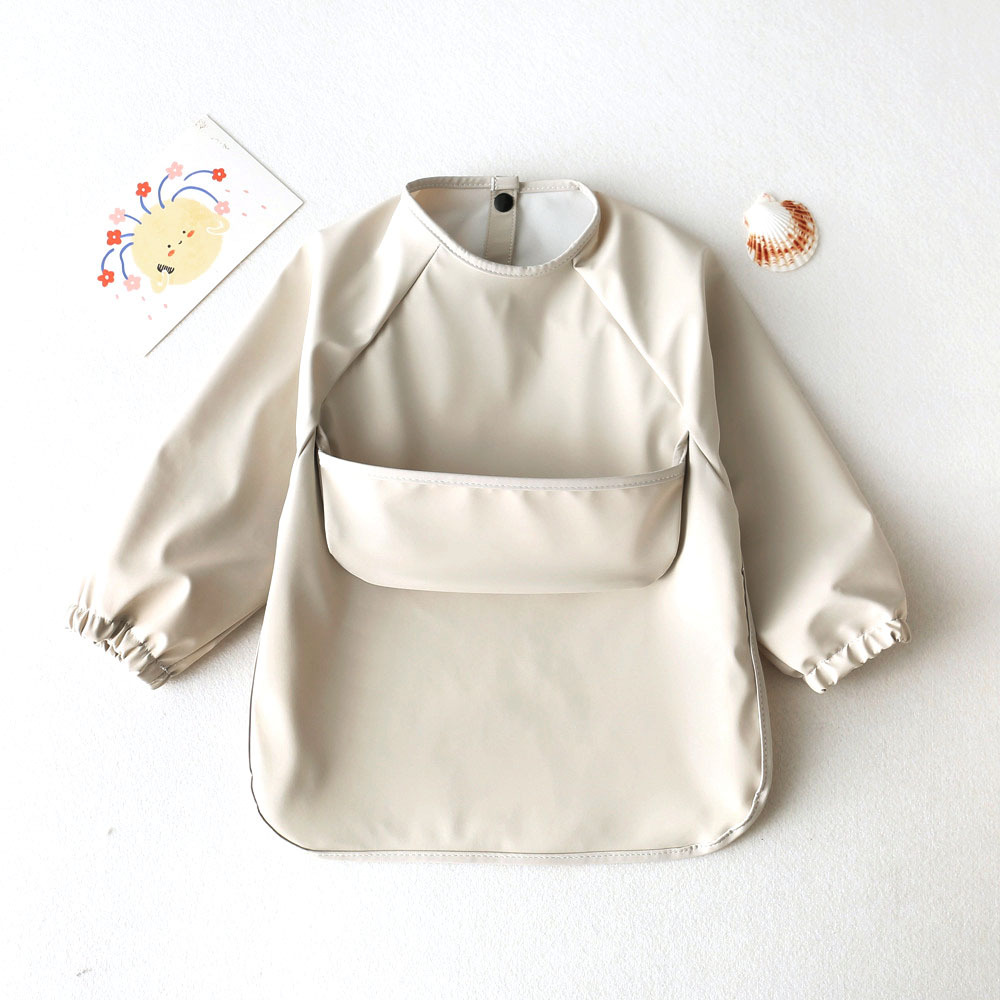☆ ベージュ ☆ M(12-36ヶ月) ☆ お食事エプロン 長袖タイプ シンプル mmbbib13c お食事エプロン 赤ちゃん 長袖 ベビー用エプロン 收藏