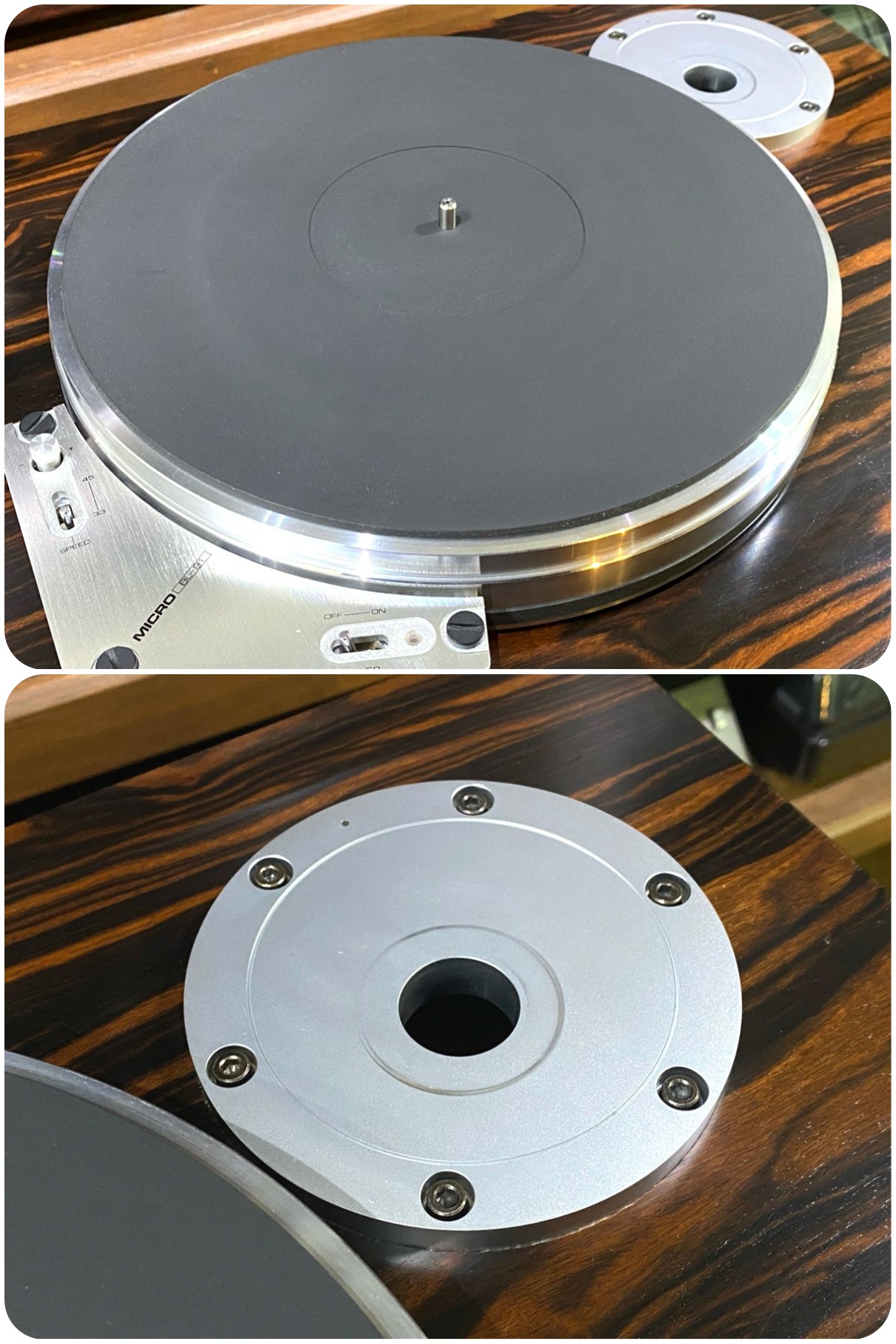 MICRO RX-2000純正の8kg砲金プラッターRT-2000Gも付け替え可能、