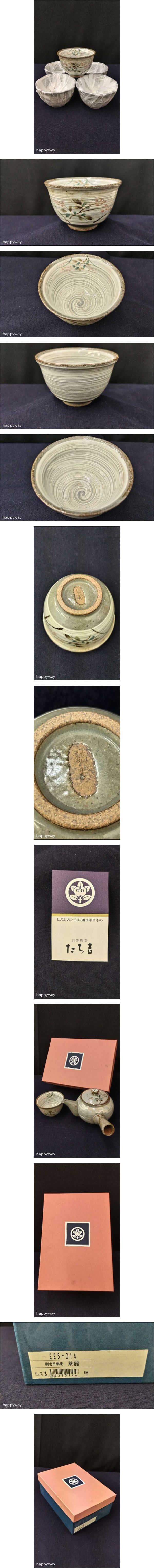 | ご覧頂き、誠にありがとうございます。 迅速・丁寧なお取引を心がけております。 出品詳細を最後まで読んでいただき、入札をご検討下さいませ。 ■商品内容 未開封 未使用品のたち吉 橘吉 TACHIKICHI 和食器 創作陶器 刷毛目草花 茶器( 急須&湯呑み×5客セット )化粧箱入りです。 自宅での保管品ですが未使用品ですので綺麗な状態だと思います。 綺麗に包まれた状態の未開封・未使用品でしたが、撮影のため開封しました。 当方専門知識はございませんのでご了承ください。 ただし個人の感覚の誤差や見逃しがある事もありますので、ご納得うえ、ご入札をお願い致します。 完品をお求めの方や、過度に状態を気にする方は入札をお控え下さいますようお願い致します。 ※専門外の商品ですので記載事項に誤りがある場合もございますが予めご了承ください。 ■商品サイズ ・急 須…口径 約8.5㎝×高さ 約10.0㎝ ・湯呑み…口径 約9.0㎝×高さ 約 5.7㎝ ※素人採寸のため若干の誤差はご容赦ください。 ■商品状態 自宅での保管品です。 商品も化粧箱も綺麗な状態です。 化粧箱に経年の汚れが多少ある程度です。 専門家でないためキズ・ヨゴレ・変色・擦れなど見落としがある場合があります。 ご了承ください。 写真でよく確認していただき、納得できる方のご入札をお願いいたします。 * ご注意 * ・画像に写っている物が全てとなります。 ・撮影時の照明等や、お客様のページをご覧になられる環境、(ディスプレイ設定・使用OS・携帯端末の種類) により、実際の商品の色目と多少異なって見える場合がございますので、予めご了承ください。 ・精密な検品を行っておりませんので細かな部分が気になる方はご入札をお控え下さい。 自宅保管の為完璧を求める神経質な方は入札を御遠慮下さいませ。 | ||