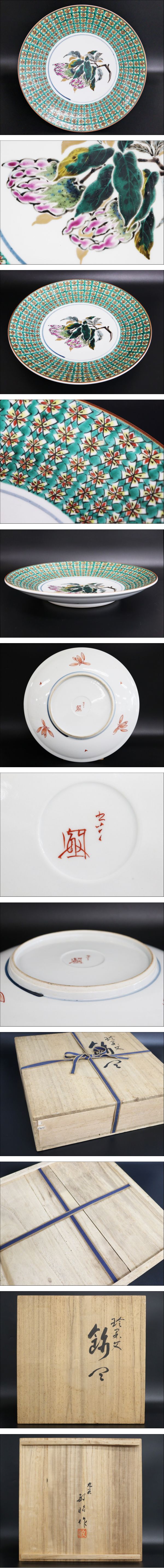 【行董】武腰敏昭 九谷 色絵 珍果文 飾皿 径31.8cm 九谷焼 絵皿 共箱 AT108ABC59 收藏