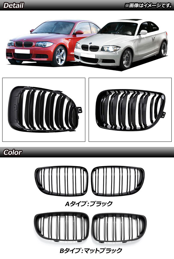 フロントグリルカバー BMW 1シリーズ E81/E82/E87/E88 後期 2007年~2012年 マットブラック ABS製 ダブルバー 收藏