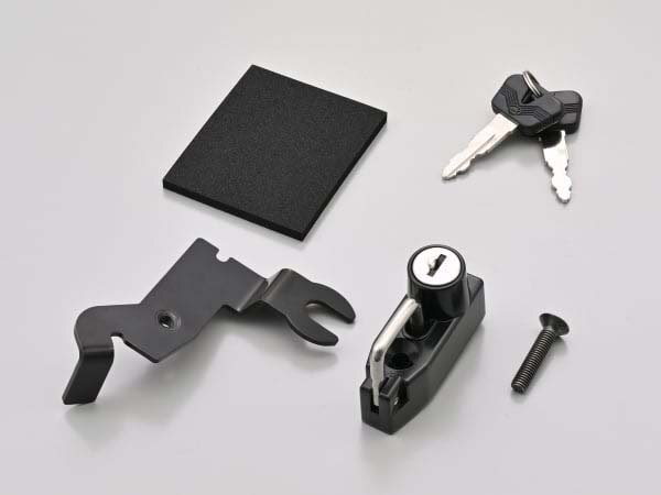 純正ライクな見た目で、車両の雰囲気を崩さないヘルメットホルダー。ボルトオンで取り付け可能です。カギは2本付属。