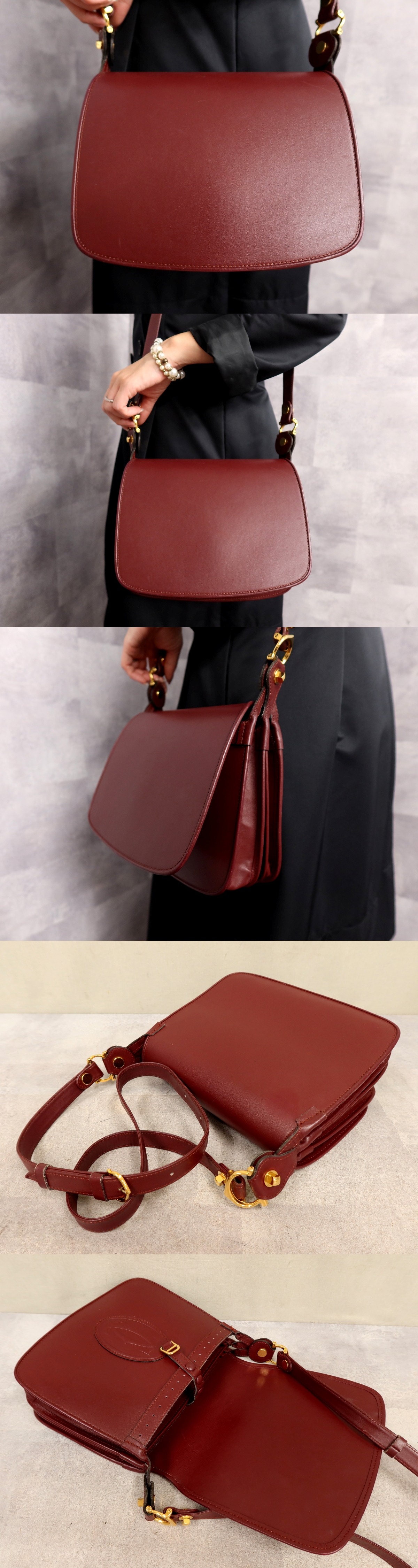 ●超美品●Cartier カルティエ●マスト●カーフ レザー 本革●ショルダー バッグ●ボルドー●ゴールド金具●肩掛け●かばん●Js62078 收藏