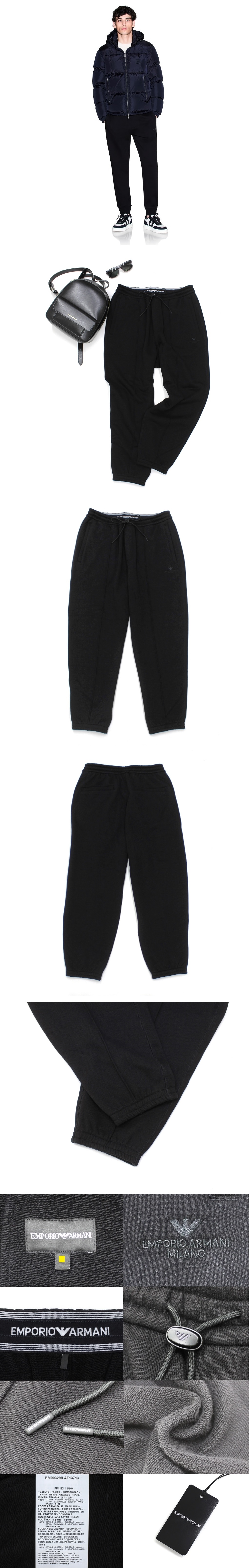 ●5万新品◆XL◆EMPORIO ARMANI アルマーニ EA7刺繍ロゴ ドローストリングコットンスウェットジョガーパンツ 黒 1円 收藏