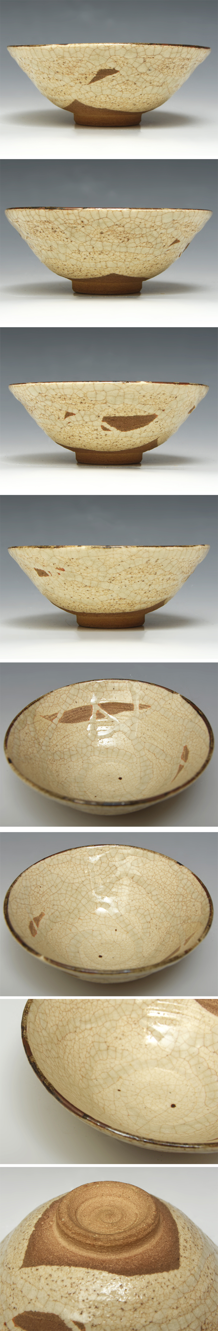穏やかな生成りの釉調に、細やかな貫入が全体に広がる茶碗です。 口縁は自然な揺らぎを見せ、見込みから高台にかけての土味が静かな存在感を与えています。 瀬戸唐津らしい素朴さと緊張感が同居し、手取りの良さと鑑賞性を兼ね備えた一碗です。 経年に伴う景色の変化も含め、作行きとして味わい深い佇まいを備えています。 目立ったダメージ等なくコンディションは良好です。 ※撮影の際に生じた写り込みなどがございます。 ※タイトルの(検)以降は検索ワードです。 ご理解の程よろしくお願い致します。 |