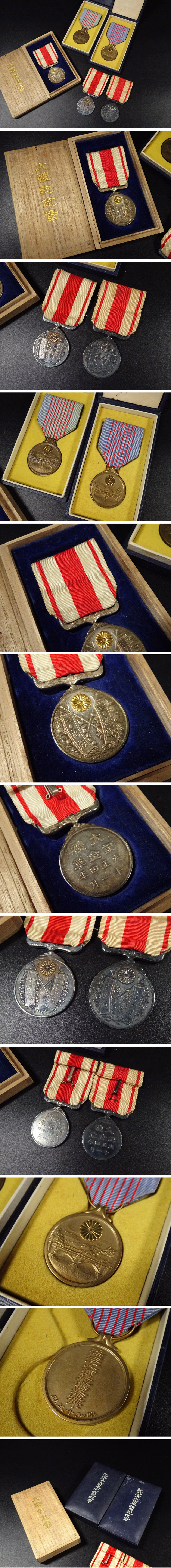 ∇花∇大日本帝国 旧日本軍 大正四年 大禮記念章 紀元二千六百年祝典記念章 勲章 5個組 銀製勲章 60.2g 天皇室陸軍大礼服 38 收藏