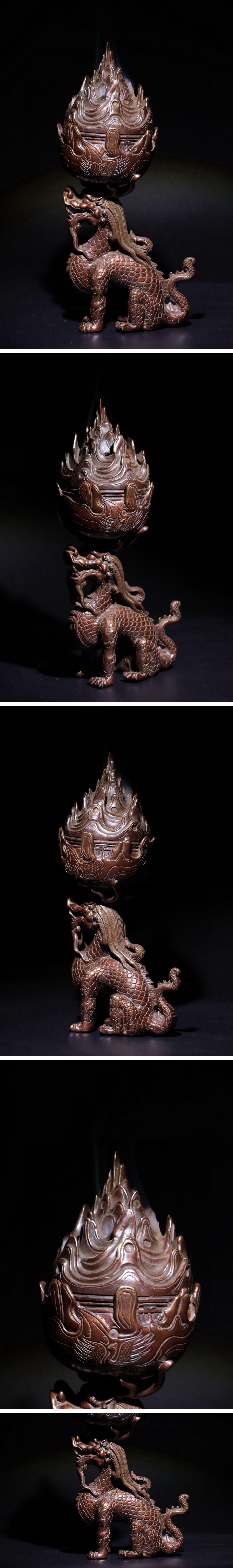 【清】関西某オークション購入 中国伝来 清時代物 唐銅 瑞獣麒麟紋薫炉 当時物 時代コレクション8L1-LS3