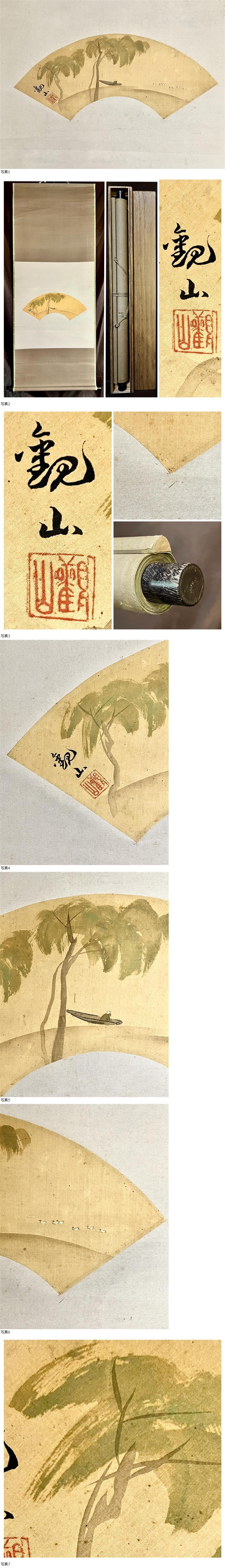【真作】【仙】下村観山「台湾風景」絹本 肉筆 合箱 扇面 風景画 山水図 絵画 掛軸 明治-昭和の日本画家 和歌山の人 師: 狩野芳崖 橋本雅邦 收藏