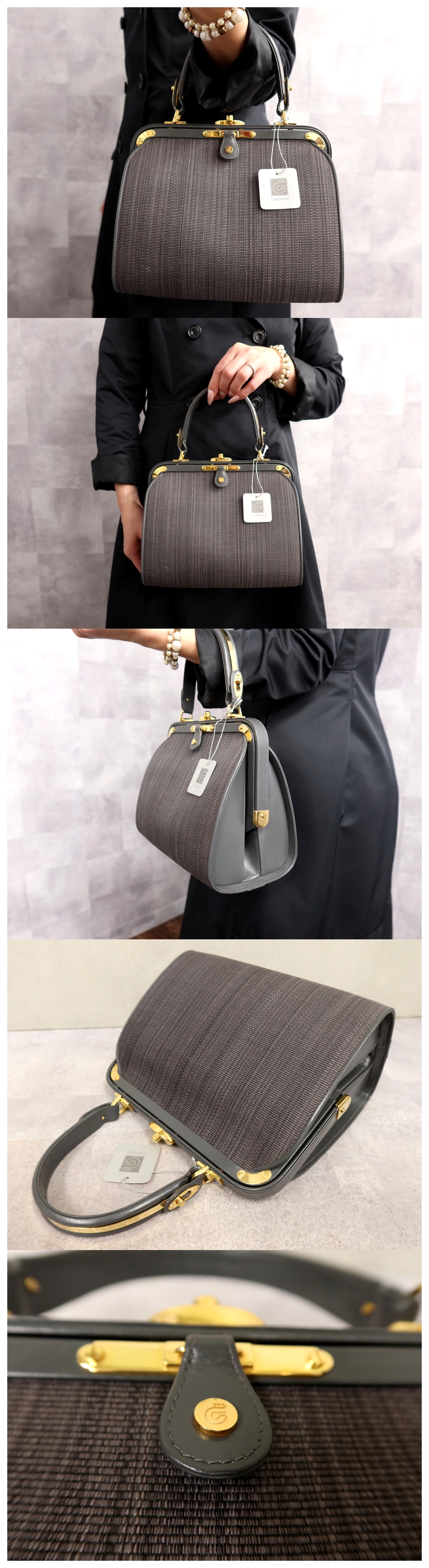 ●超美品●COMTESSE コンテス●トップハンドル●ホースヘアー 本 馬毛 革 カーフ レザー 本革●ハンド バッグ●グレー●G金具●Js65260 收藏