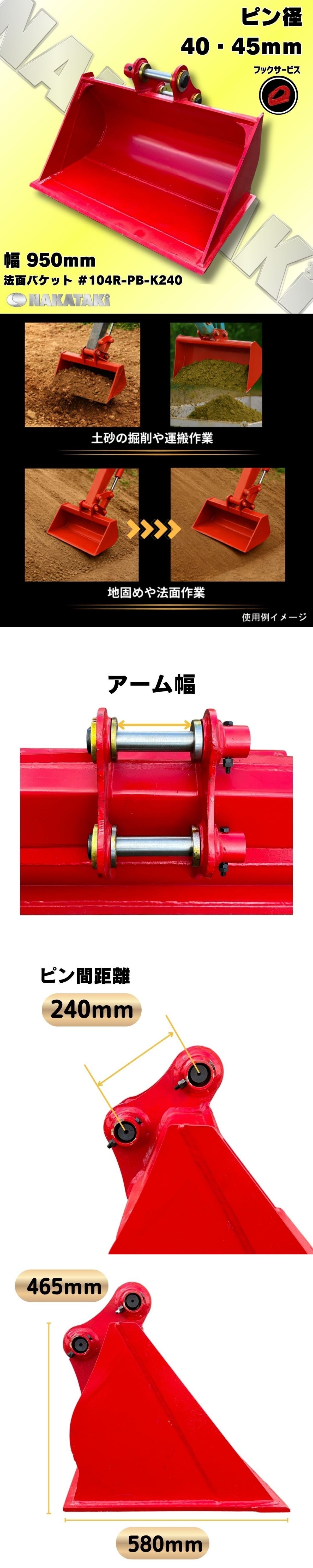 新品 法面 バケット 幅950mm ピン間距離240mm【ピン径 40mm】