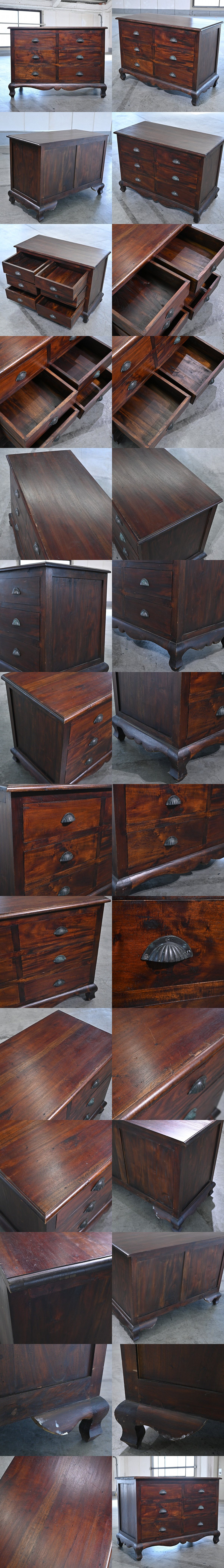 ビーカンパニー ローチェスト 3段 樺材 バーチ シェル型取手 猫足 箪笥 タンス 引き出し アジアンテイスト アンティーク調 B-COMPANY 收藏