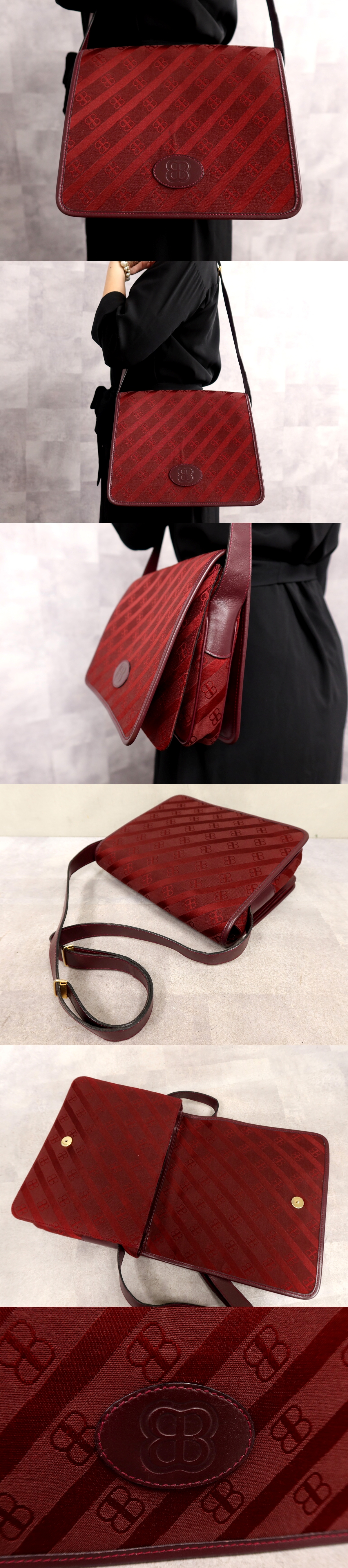 ●超美品●BALENCIAGA バレンシアガ●BBロゴ●総柄●キャンバス カーフ レザー 本革●ショルダー バッグ●ボルドー●ゴールド金具●Js66865 收藏