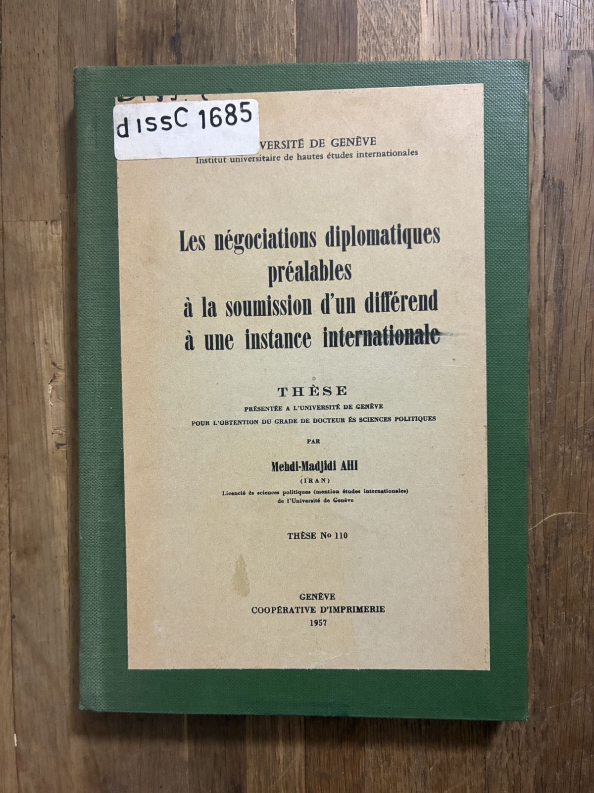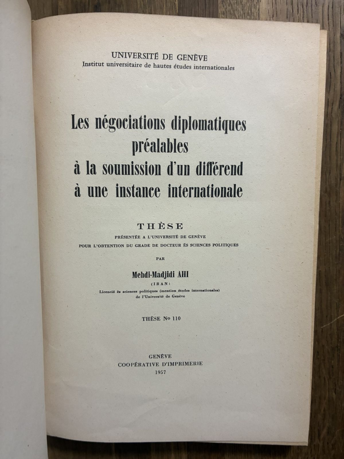 1957年, アヒ『国際裁判付託前の外交交渉』, Mehdi-Madjidi Ahi, Les ngociations diplomatiques pralables la soumission... 收藏