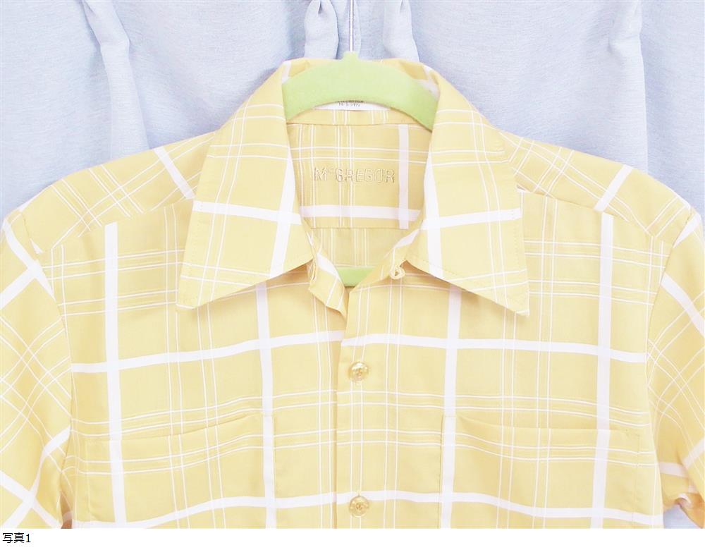 ◆ヴィンテージ ポリコットン 開襟シャツ McGREGOR マックレガー マスタードイエロー チェック ボックス オープンカラー 60s 70s 90s 菅田 收藏