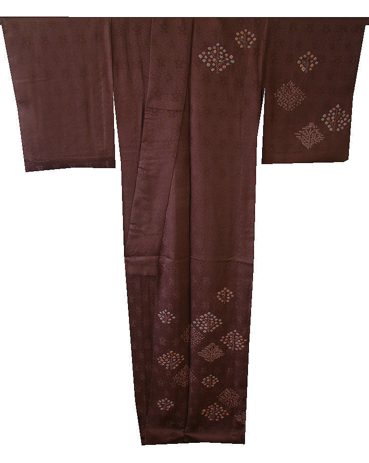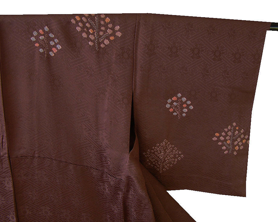 単衣!時代屋 裄63.3cm S寸 紋意匠地 絞り入り 附下げ 訪問着 正絹 仕立上り 147cm~153cm HH1455 收藏