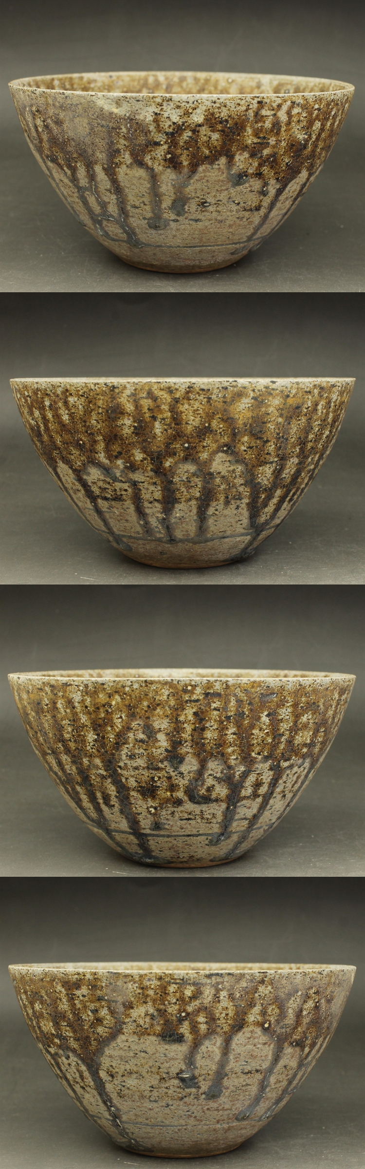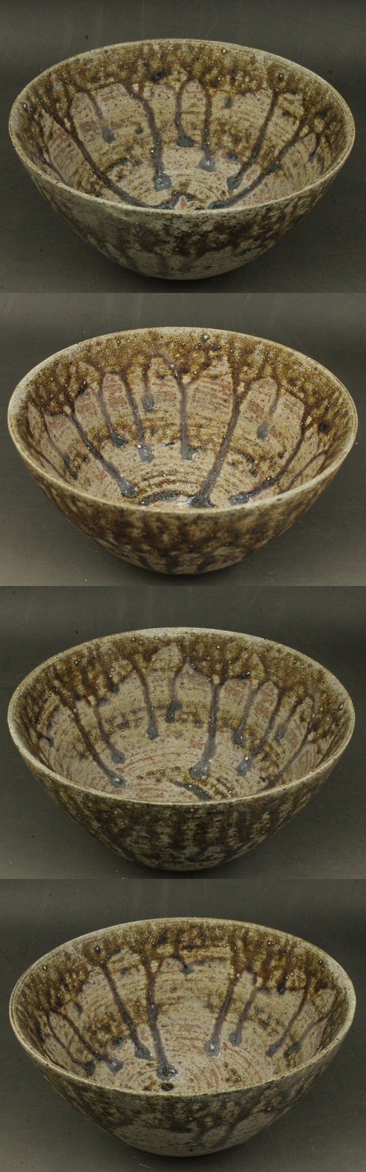 D630 褐釉 飴釉 茶碗 径14㎝ 高さ7.5㎝ 鉄釉垂 東南アジア・中国古陶器模写複製品 クメール カンボジア 蔵出し 古玩 珍蔵 收藏