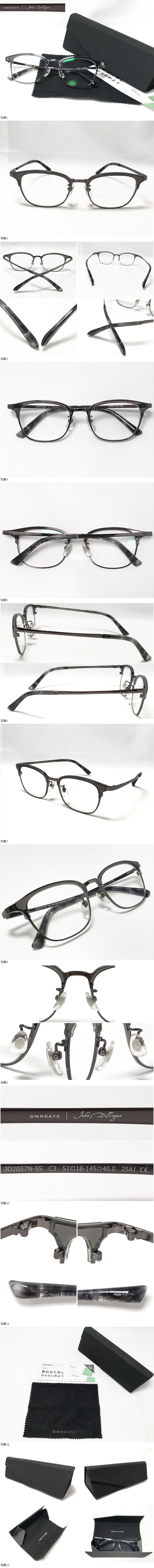 ◆JohnDillinger ジョン・デリンジャー ウェリントン OWNDAYS 度入り メガネ 眼鏡 JD2057N-5S C3 51□18-145 〇40.0 25A1 クロス・ケース付 收藏