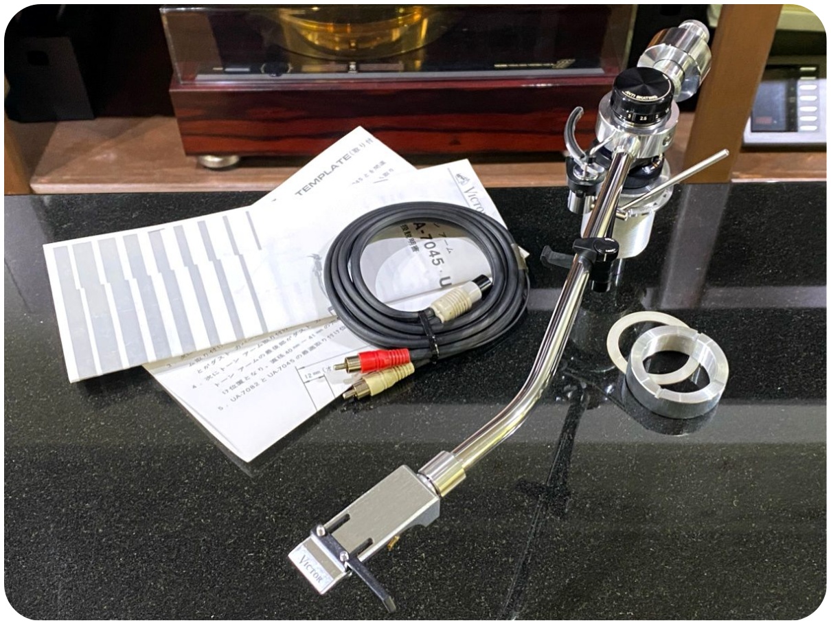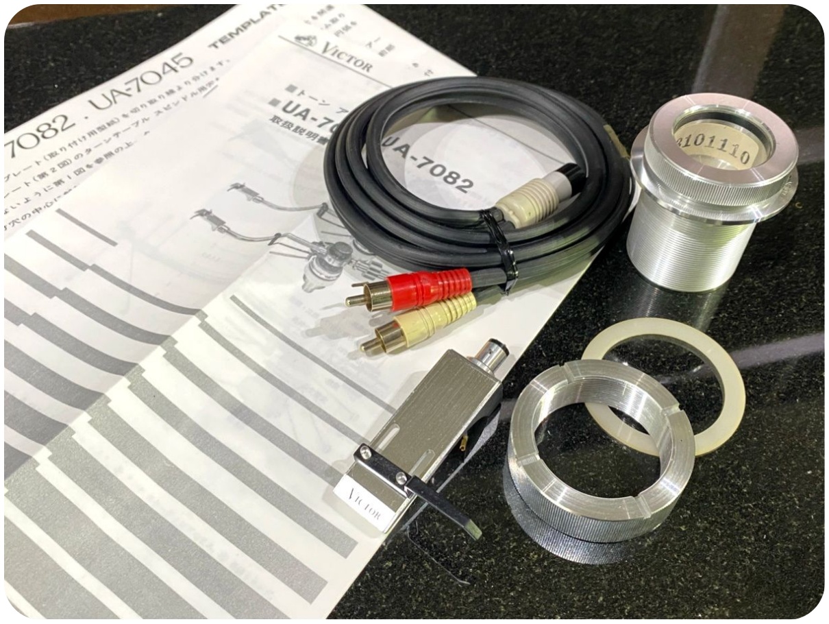 Victor UA-7082 ロングトーンアーム 純正シェル/PHONOケーブル等付属1975年頃に発売されたUAシリーズのニュージンバルサポート方式ユニバーサルトーンアーム。