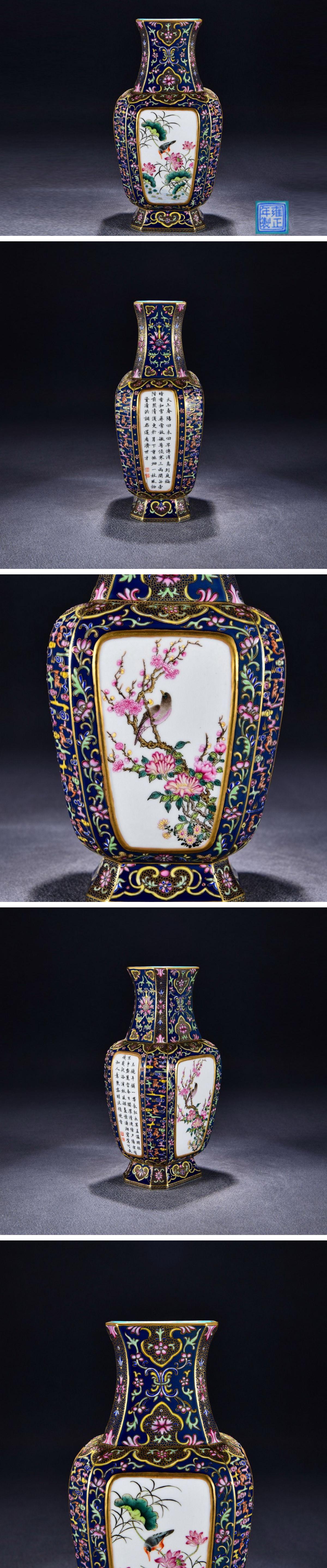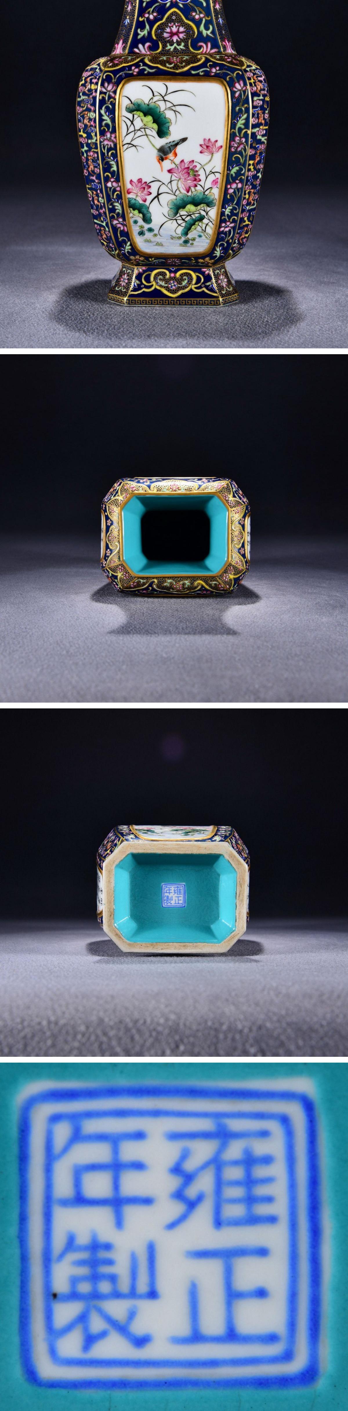 【清】関西某オークション購入 中国伝来 清時代物 大清雍正年製 粉彩花鳥紋四方瓶 当時物 時代コレクション8L1-YS8 收藏