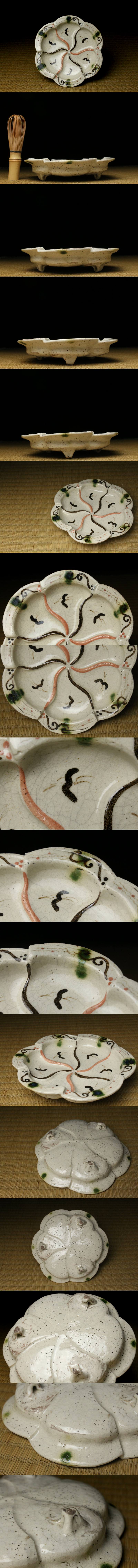 ①26021753T* * * 商品詳細 * * * ここでしか出逢うことのできない唯一の美をご紹介させて頂きます。 江戸初期の美意識を今に伝える、弥七田織部の優品。 型押しによってやわらかな捻花形に成形された優美な器体は、見る角度によって花弁が立体的に浮かび上がり、静かな存在感を放ちます。見込みには軽妙な筆致で描かれた千鳥文。余白を活かした構図と、弥七田特有の温かみある釉調が、侘びの趣と遊び心を絶妙に調和させています。 淡い長石釉の中に、色彩が柔らかく溶け込み、自然な貫入が時代の経過を物語る景色を形成。三足造りの安定感ある姿は、実用と造形美を兼ね備え、茶の湯の席や懐石の器としても格別の趣を演出します。 江戸初期織部の中でも、弥七田らしい素朴さと洗練が同居した一作。時代を超えて愛される意匠美を、ぜひお手元でご堪能ください。 ■サイズ/横16㎝×高3.5㎝ ■状態/ 経年によるスレ、小傷、汚れがございます。 ※写真にてご確認、ご了承の上ご入札下さい。 ※下画像をクリックして頂くと拡大してご覧いただけます。 * * * 支払詳細 * * * !かんたん決済 * * * 発送詳細 * * * 入金確認後3営業日以内に発送致します。 ※直接引き取りも可能です。 60~160サイズにつきましては 佐川急便、ゆうパックのどちらかで発送いたします。 ゆうパック発送の場合、弊社の発送日から追跡サービスに問合せ番号が反映されるまで 約1日ほどお時間がかかりますのでご了承下さい。 佐川急便での発送の場合送料は下記のURLにてご確認下さい。 同梱を希望の場合は梱包サイズを測り直し 佐川急便の定価料金としますので ご了承ください。 【送料についてのご案内】 商品ページ上で「送料は無料」と表記されている場合がございますが、 実際には送料無料ではございませんので、あらかじめご注意ください。 送料はお届け先の都道府県ごとに異なるため、事前に確定しておりません。 そのため、システム上「無料」と表記しておりますが、 落札後に送料を算出し、ご連絡いたします。 ご落札後、お届け先の都道府県名をご連絡ください。 送料が確定次第、改めてご案内いたします。 【西濃運輸での発送の場合】 西濃運輸発送 関東地方・支店止めで約10,000円が目安となります。 ※地域・サイズにより変動します。 美術品の為、運送保険がかけれない為ご了承ください。 運送事故に不安がある方は ご自身で運送業者を手配していただくか 直接引取に来て貰う事をおすすめします。 運送事故が起こらないように万全の梱包をしますが 万が一事故が起こった場合当社は責任を負いかねますのでご了承ください。 日時指定はできません。 【ゆうパック(複数個口)発送の場合】 ゆうパック複数個口発送の場合も、 送料は無料と表記されていても、送料無料ではありません。 送料はお届け先の都道府県・個口数により異なりますので、 落札後、送料確定次第ご連絡いたします。 ※「送料無料」と表記されている商品は、 実際に送料が無料になるわけではございませんので、 この点を十分ご理解の上、ご入札をお願いいたします。 * * * 注意事項 * * * 商品到着後、すみやかに受取連絡をお願いします。 また、運送中の破損があった場合は速やかに当社までご連絡下さい。 保険を利用するのに受取連絡後に運送会社による現場での破損状況確認が必要となります。 勝手に返送されますと保険の適用外となりますのでご注意ください。 * * * * * * お問い合わせ:082-236-8669 |