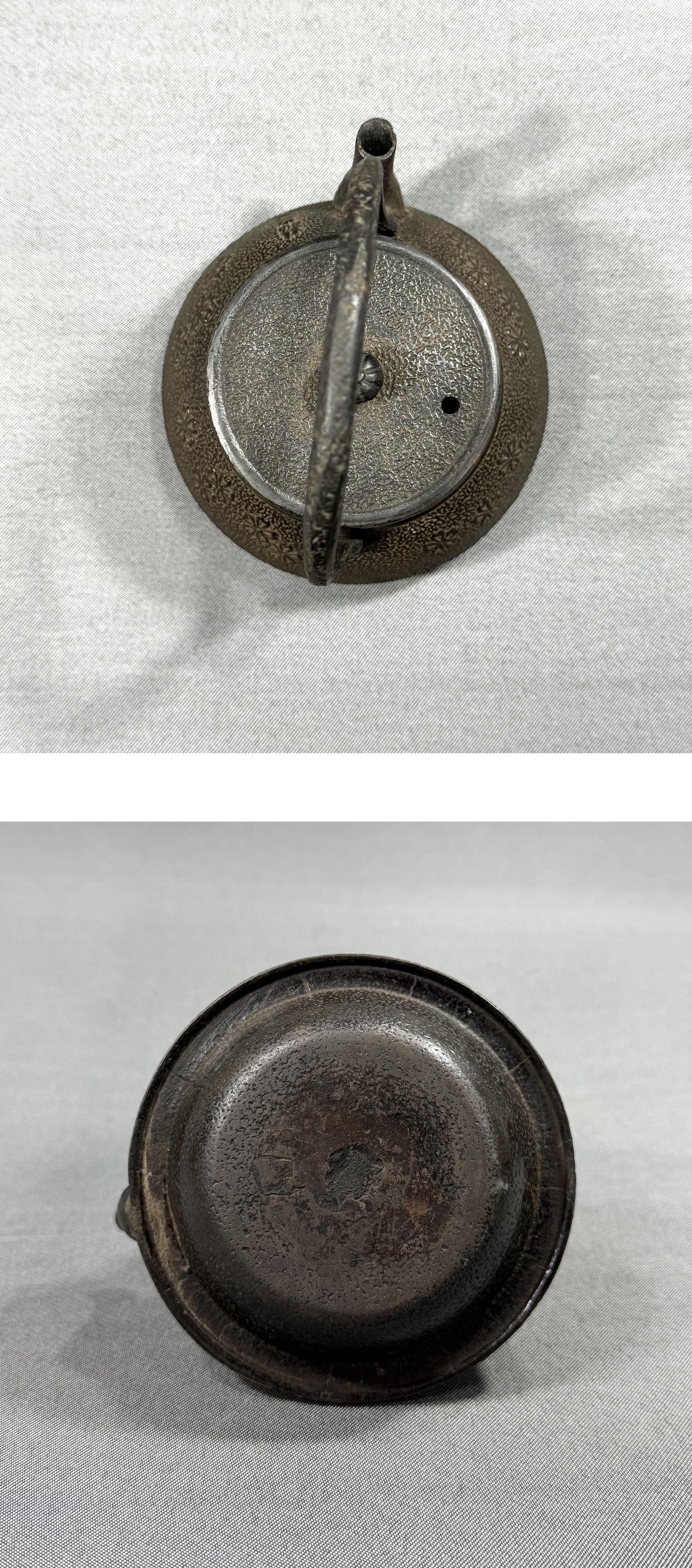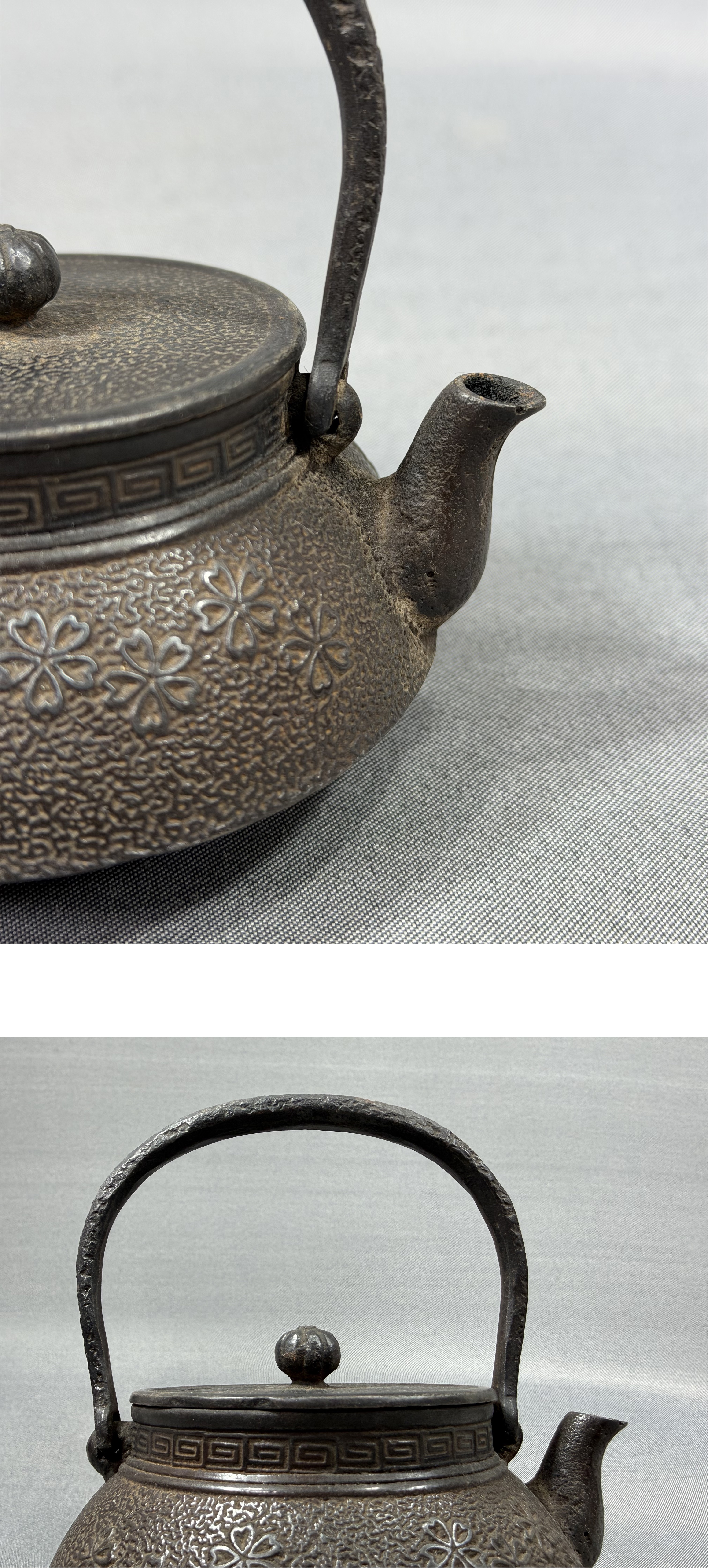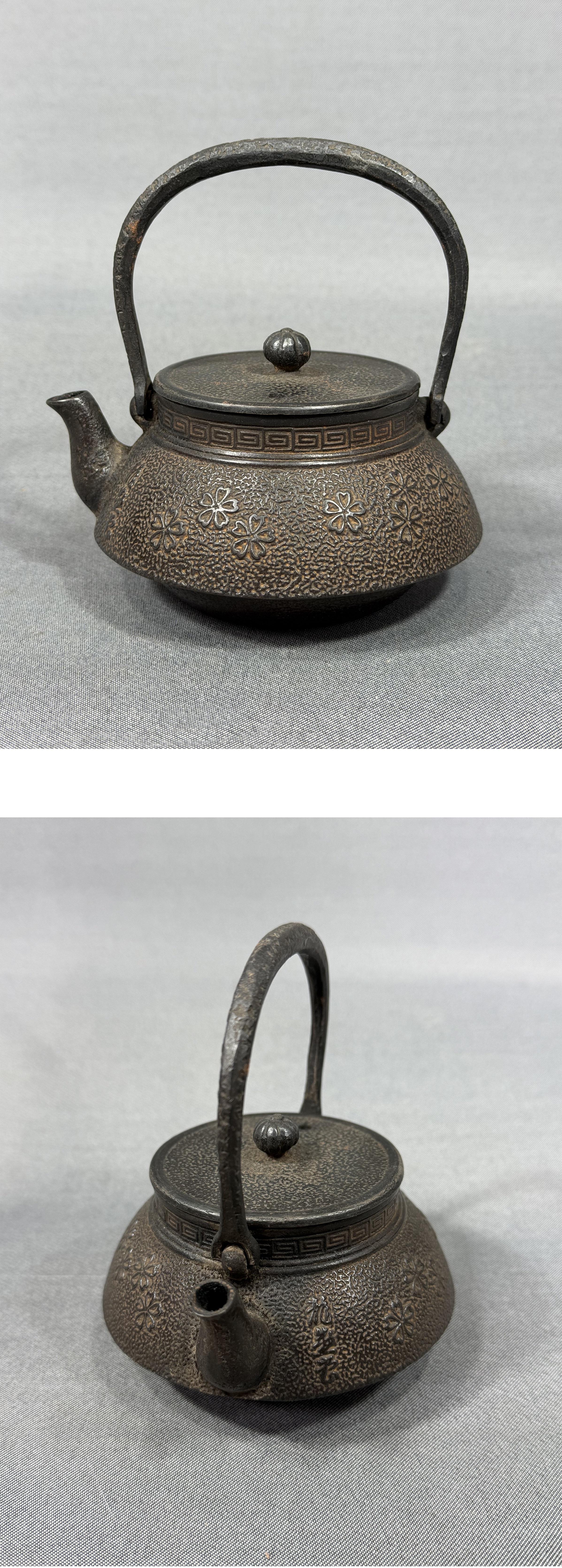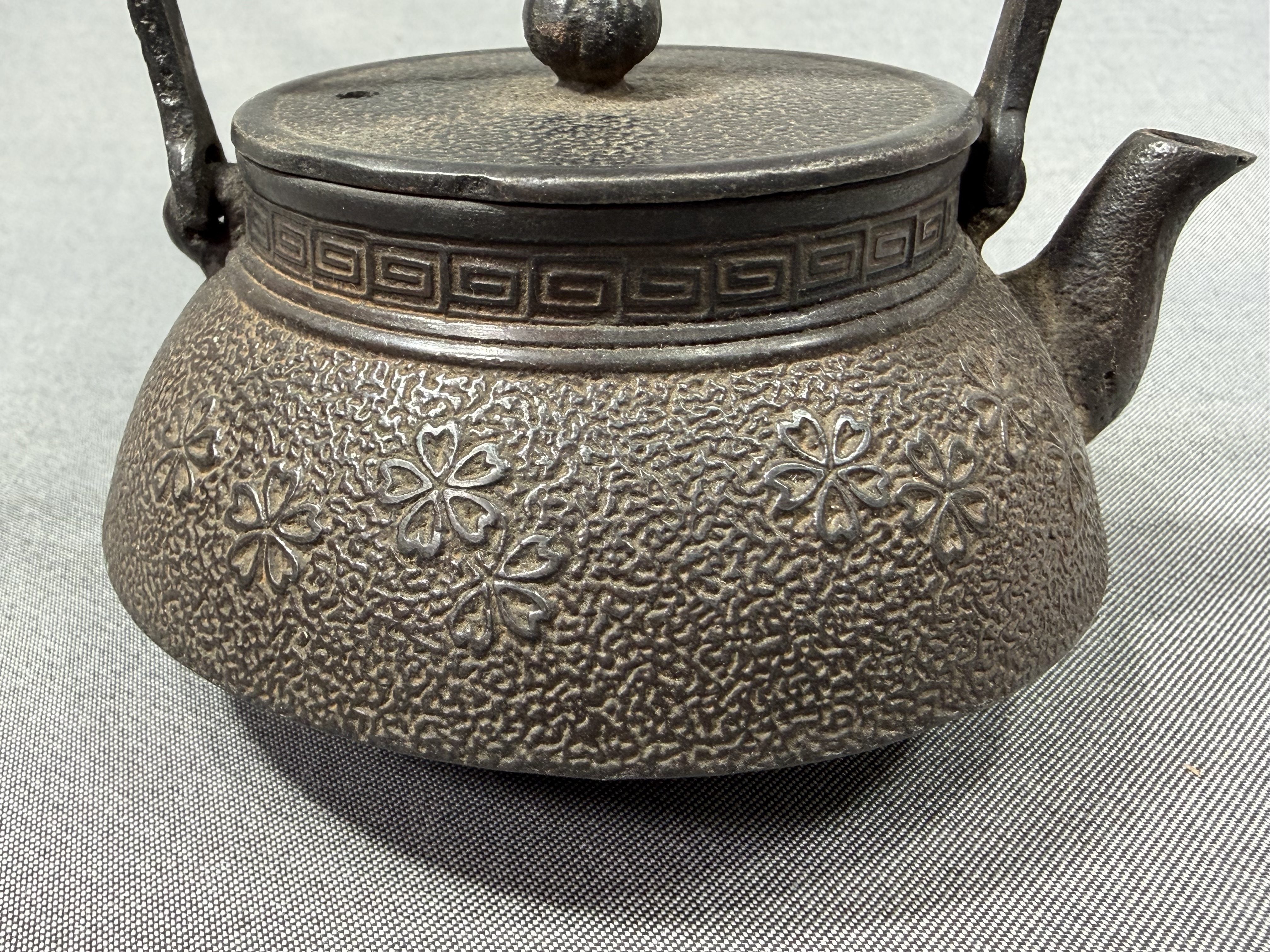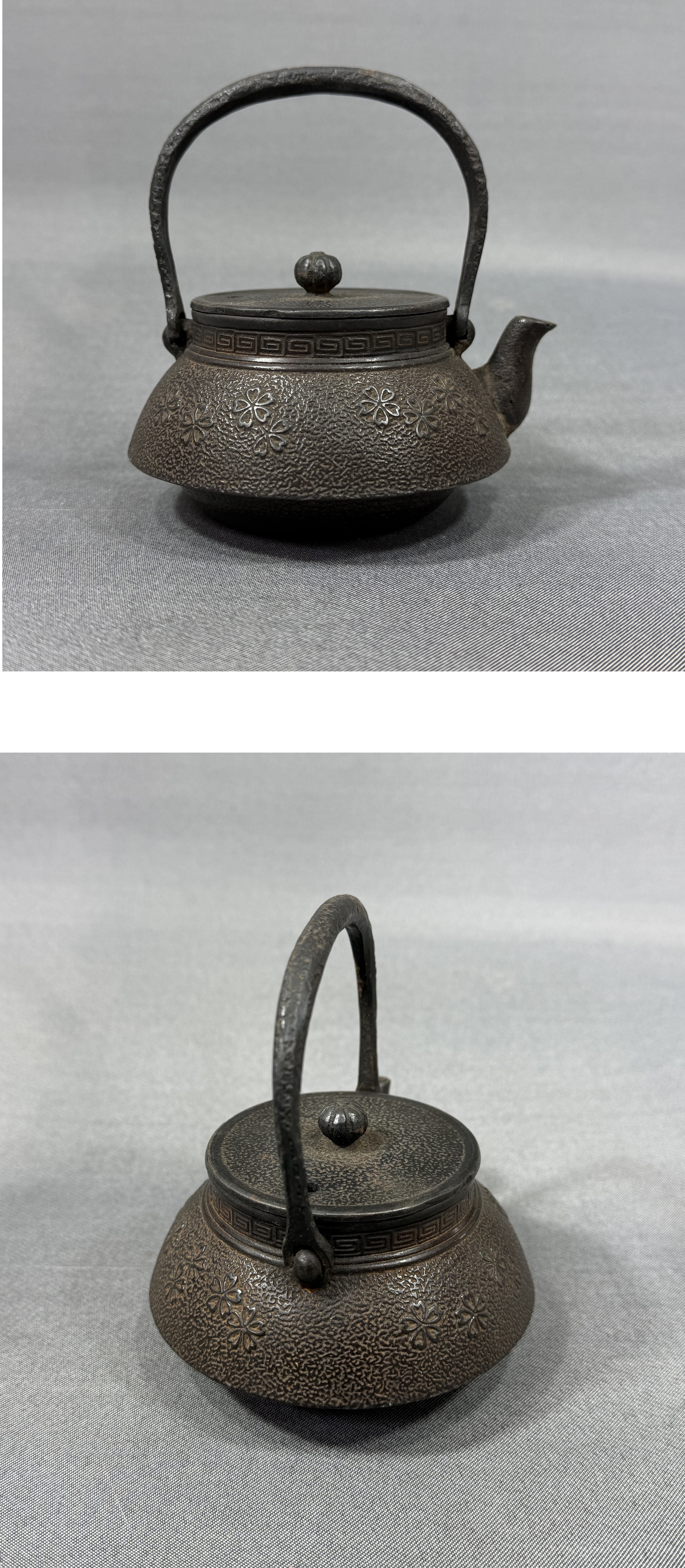 【風車】南部鉄器 龍盛堂 桜文 小振 鉄瓶 煎茶道具 急須▲在銘 水漏れ無し 230ml▲湯沸かし 茶道具 收藏