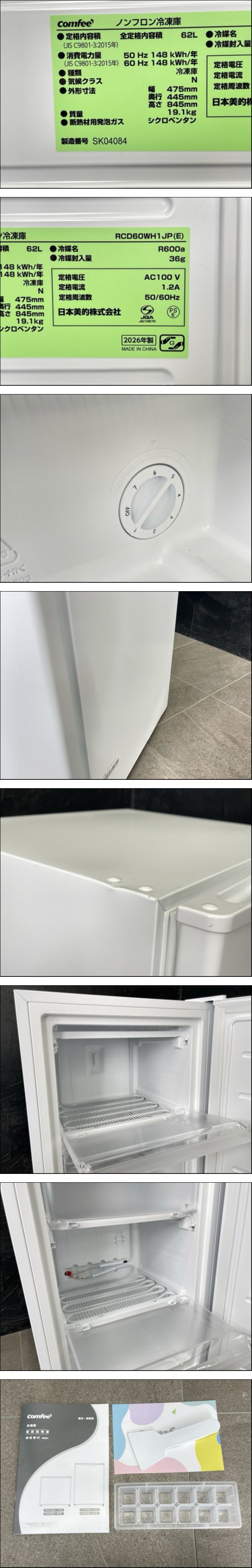 難有り Comfee コンフィー ノンフロン冷凍庫 RCD60WH1JP 2026年製 1ドア 前開き 62L 凹みあり 039001 / 23753 收藏