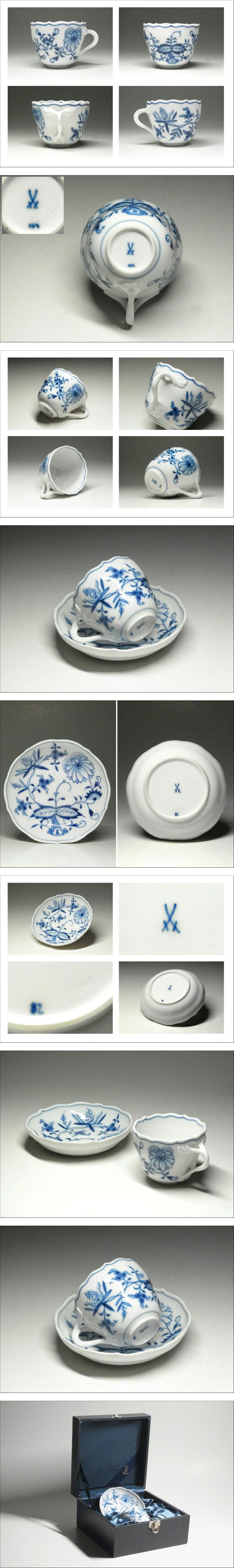 27□Meissen□未使用 マイセン ブルーオニオン デミタス カップ&ソーサー 共箱付 收藏