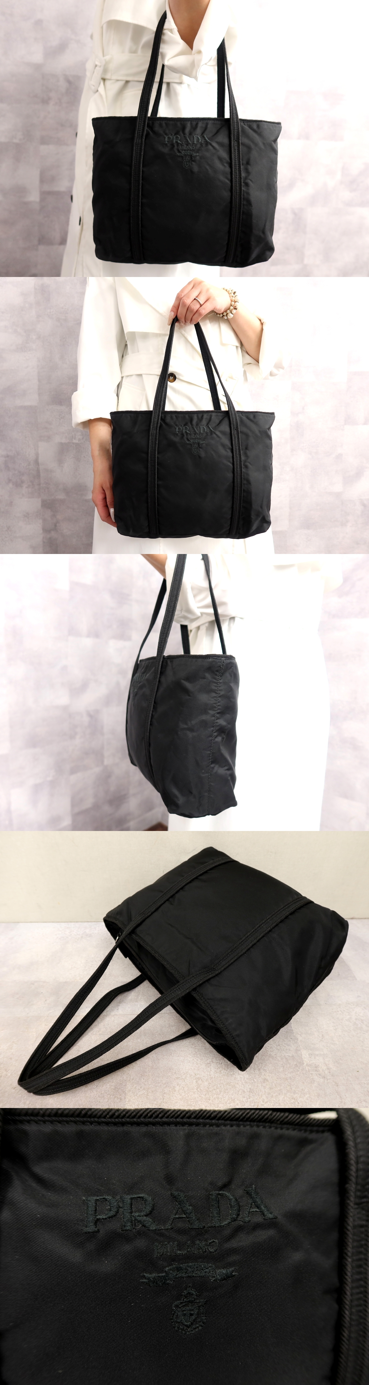 ●超美品●PRADA プラダ●ロゴ刺繍●ポコノ ナイロン●トート ハンド バッグ●黒●シルバー金具●腕掛け●イタリア製●かばん●Js66913 收藏