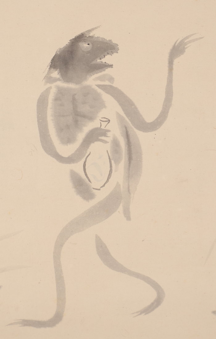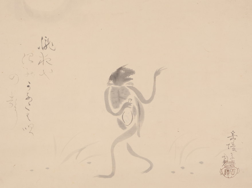 【模写】【伝来】ts2628〈中村岳陵〉酒河童画賛「朧夜や~」共箱 川辺御楯師事 静岡の人 收藏