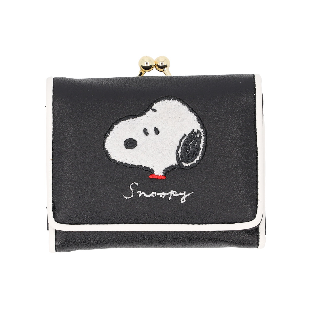 ☆ スヌーピーワッペンBLACK ☆ キャラクター がま口ミニウォレット 三つ折り財布 レディース がま口 三つ折財布 財布 三つ折り ミニ財布 收藏