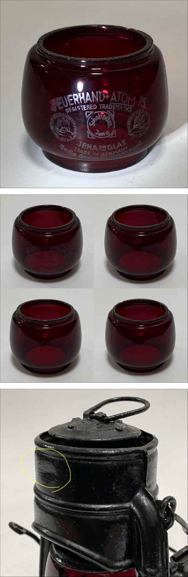 | ご覧いただきありがとうございます。 Feuerhand 75 ATOM STK フュアーハンド アトム ストームカッペ フュアーハンド社の最小サイズモデルの風防付きモデル。 1940年~1942年のごく短期間のみ生産された希少モデル。 大変希少な純正赤ホヤを装着しています。 ホヤは縁が若干削れていますが、欠け無くきれいな状態です。 風防部分にわずかなへこみがあります。 部分的に塗装剥げ・サビがあります。 ウィックの上下、バーナー部脱着、燃料キャップの脱着、リフターの上下など可動箇所に問題ありません。タンクの漏れはありません。 【サイズ】 本体高さ 16cm | ||