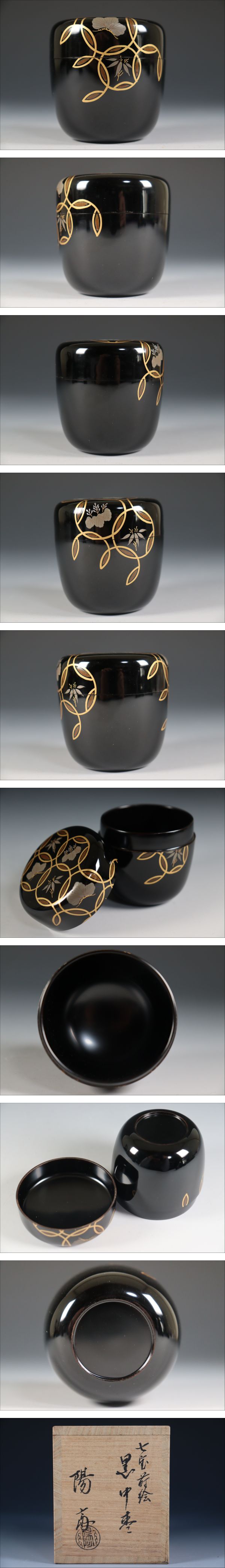 | 商品説明 | 商品名:蔵出し品 漆 岡本陽斎 七宝蒔絵 黒中棗 付属品:共箱あり。 サイズ:高さ7cm、口径6,2cm、高台3,3cm。 状態:無傷になります。 |