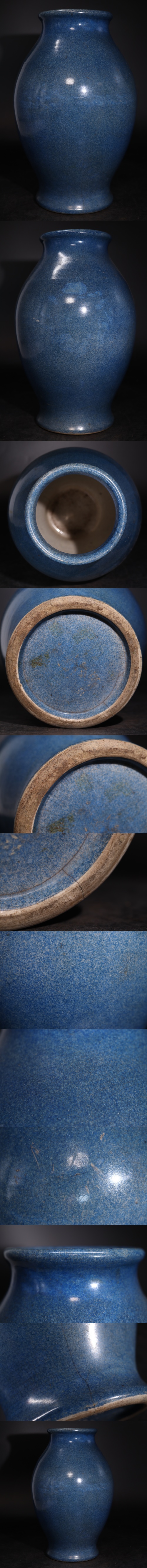 | 時代 海鼠釉 藍釉 花瓶 / 中国美術 青釉 壺 飾壺 花器 煎茶飾 .G3658 |