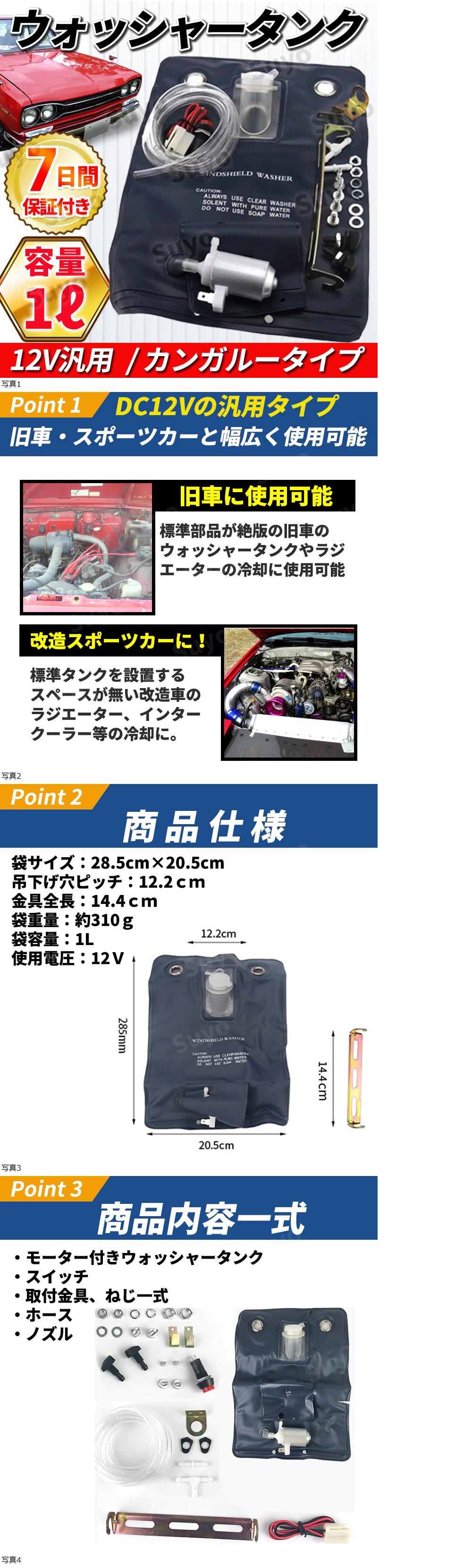 ウォッシャータンク カンガルータイプ ウィンドウウォッシャー 冷却 12V ラジエーター インタークーラー オイルクーラー バッグ 旧車 汎用