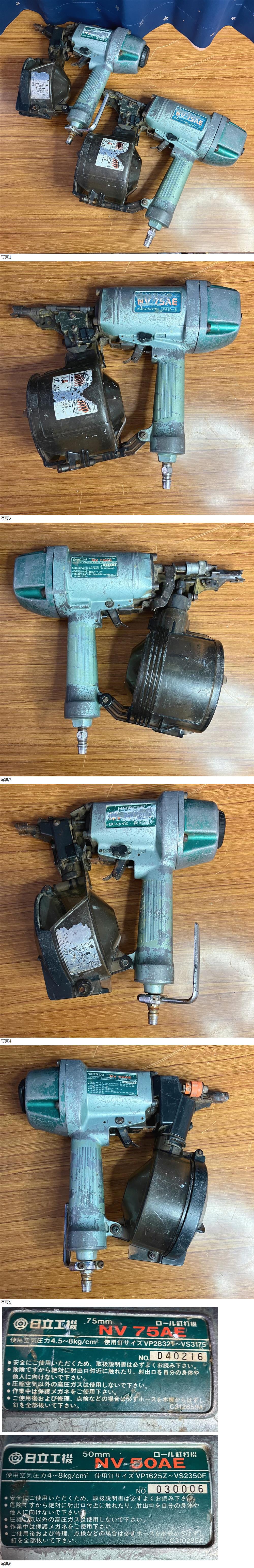 HITACHI/日立工機/ロール釘打機/NV50AE/NV75AE/50mm/2点セット/大工道具/工具/釘打ち機/エアーツール/中古品/現状品/ジャンク/24 收藏