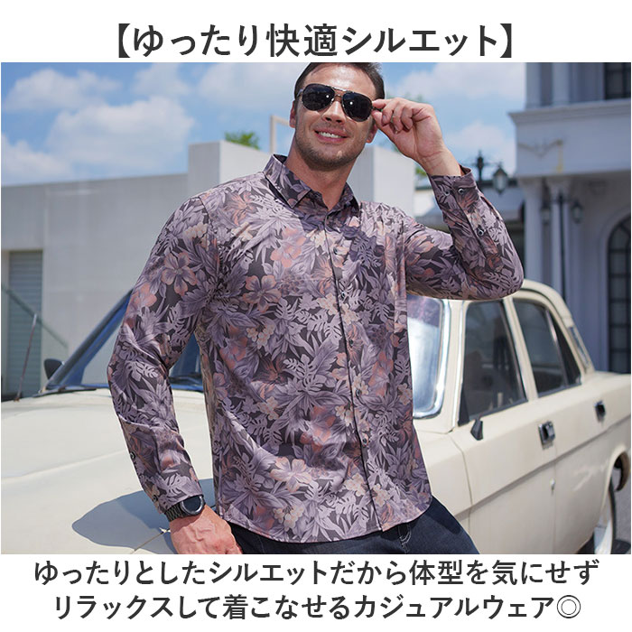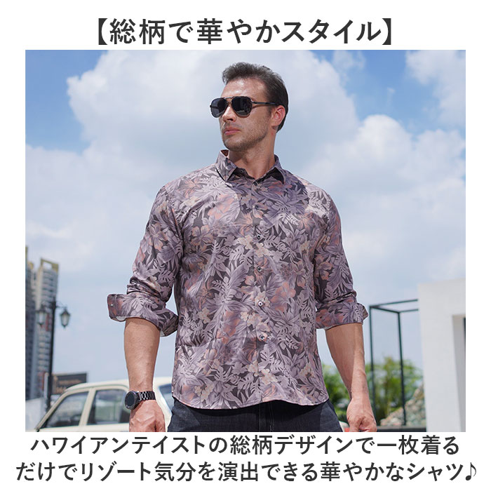 ☆ C ☆ 2XL ☆ アロハシャツ 総柄 メンズトップス 長袖 アロハシャツ メンズ 長袖シャツ ハワイアンシャツ 柄シャツ 收藏